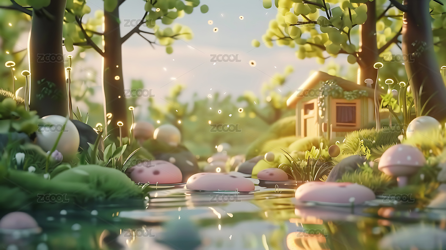 梦幻,卡通,电商,乐园,3d,童话,清新,自然,展台,风景