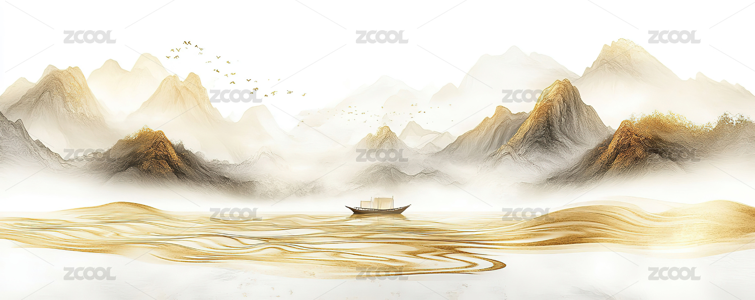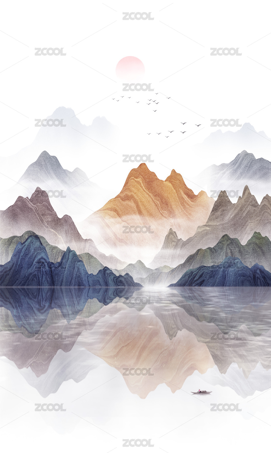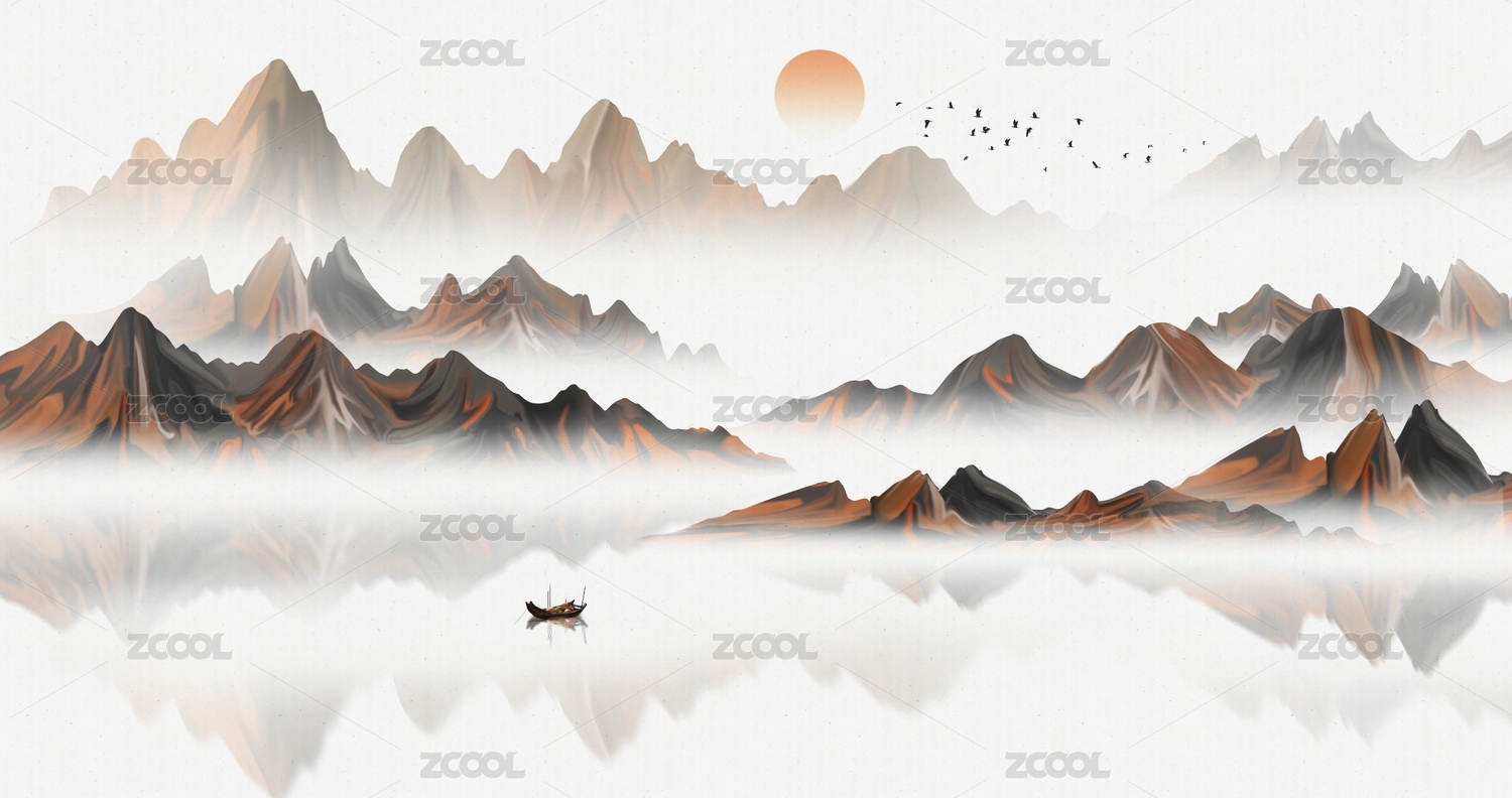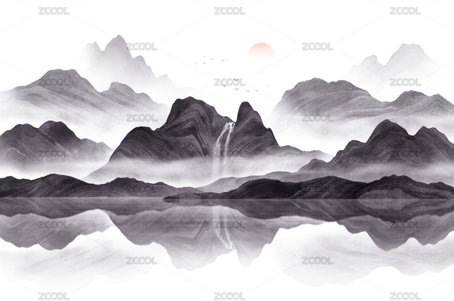插画,水墨画,中国风,中国画,传统,山水,山水画,风景,山脉,鸟类
