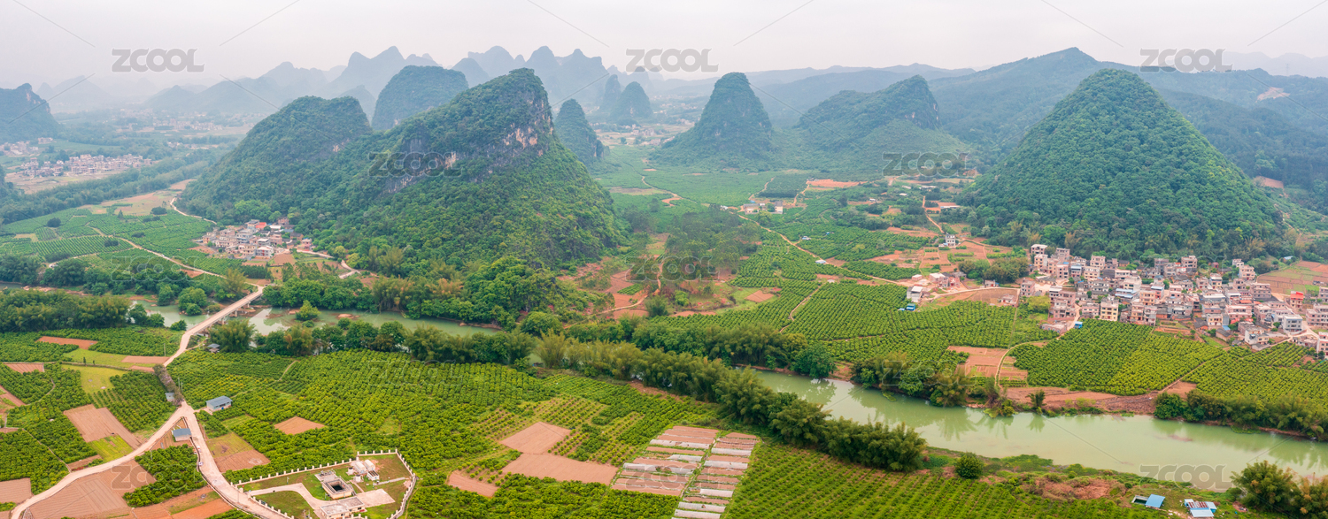 广西桂林阳朔兴坪古镇漓江航拍山水自然风光
