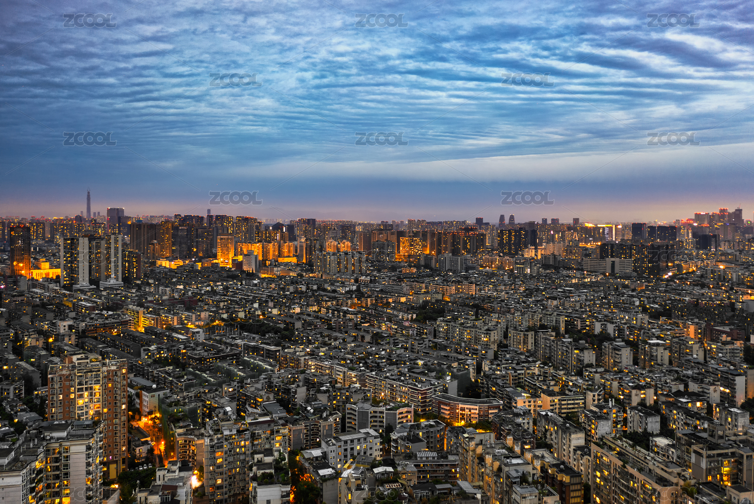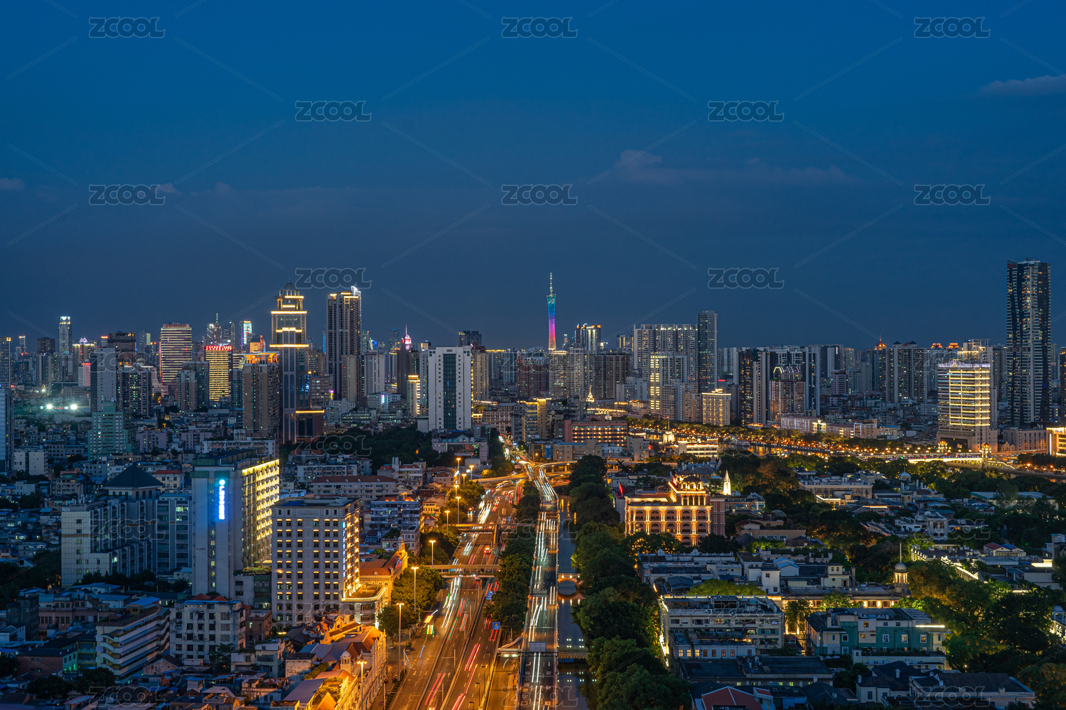 中国广州城市建筑夜景灯光夕阳晚霞风光