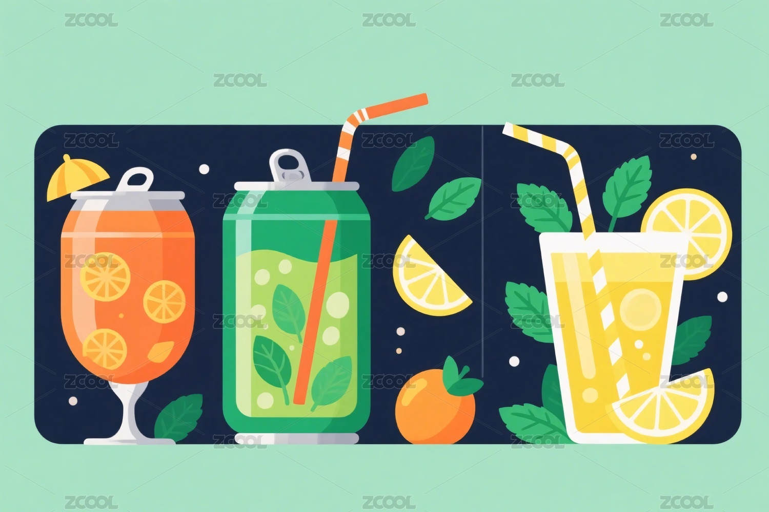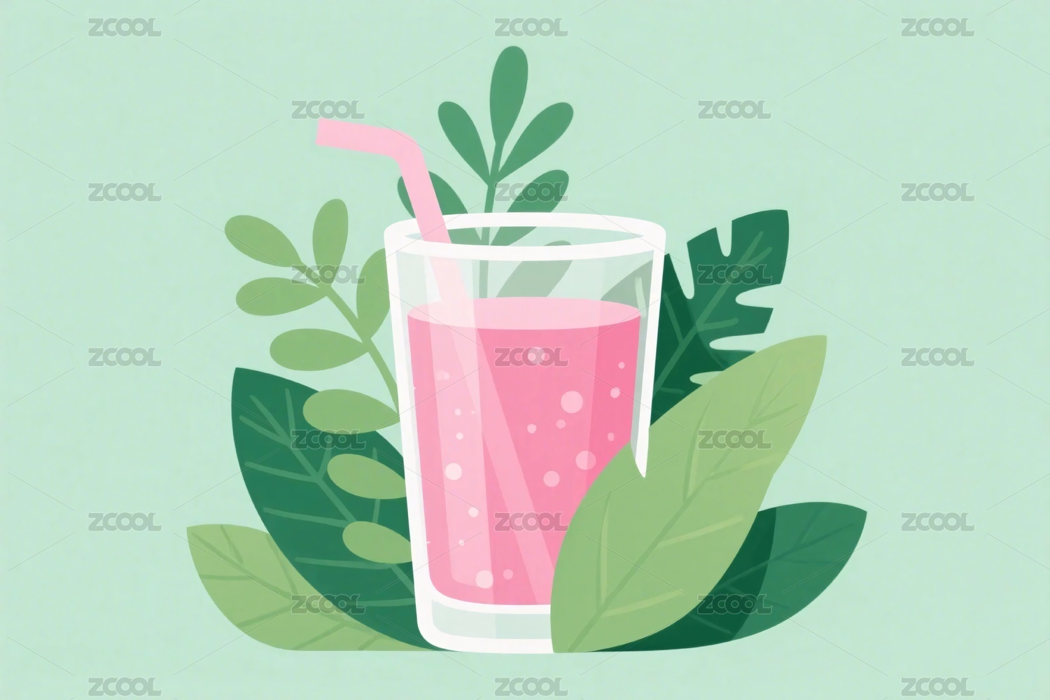 简约,健康,插图,饮料,图画,早餐,牛奶,果汁,蔬菜,水果
