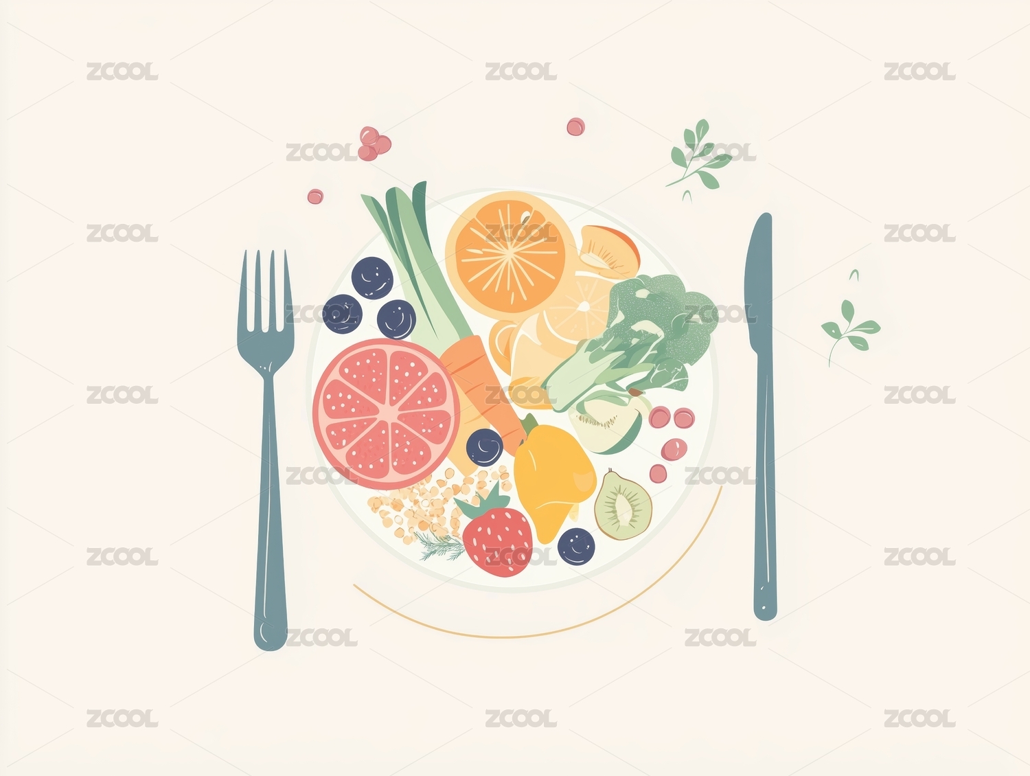 健康美食健身餐减肥早餐轻食沙拉减脂餐插画