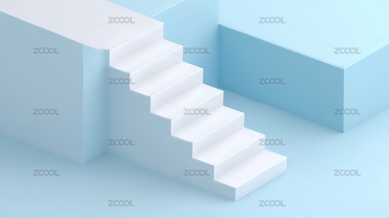 白色阶梯与蓝色几何体