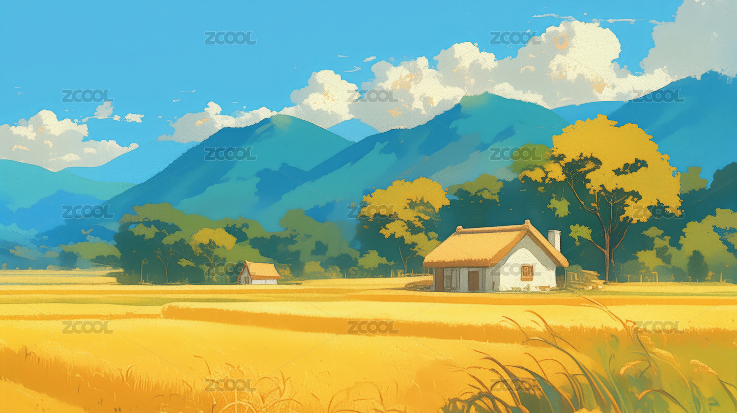 乡村,农村,村庄,田园,风光,插画,绘本,风景,户外,自然