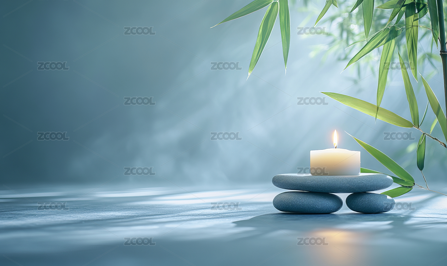SPA按摩石头堆叠香气蜡烛冥想放松背景