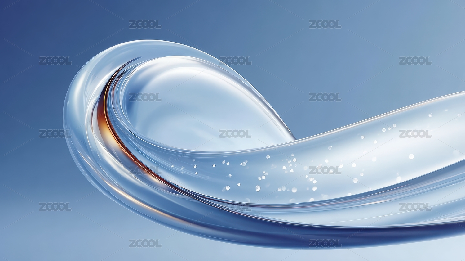 蓝色背景中的透明流体艺术形态