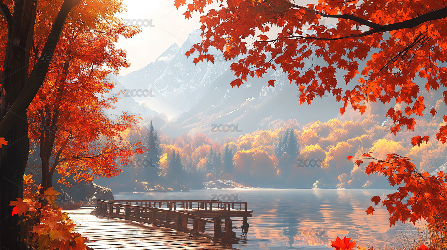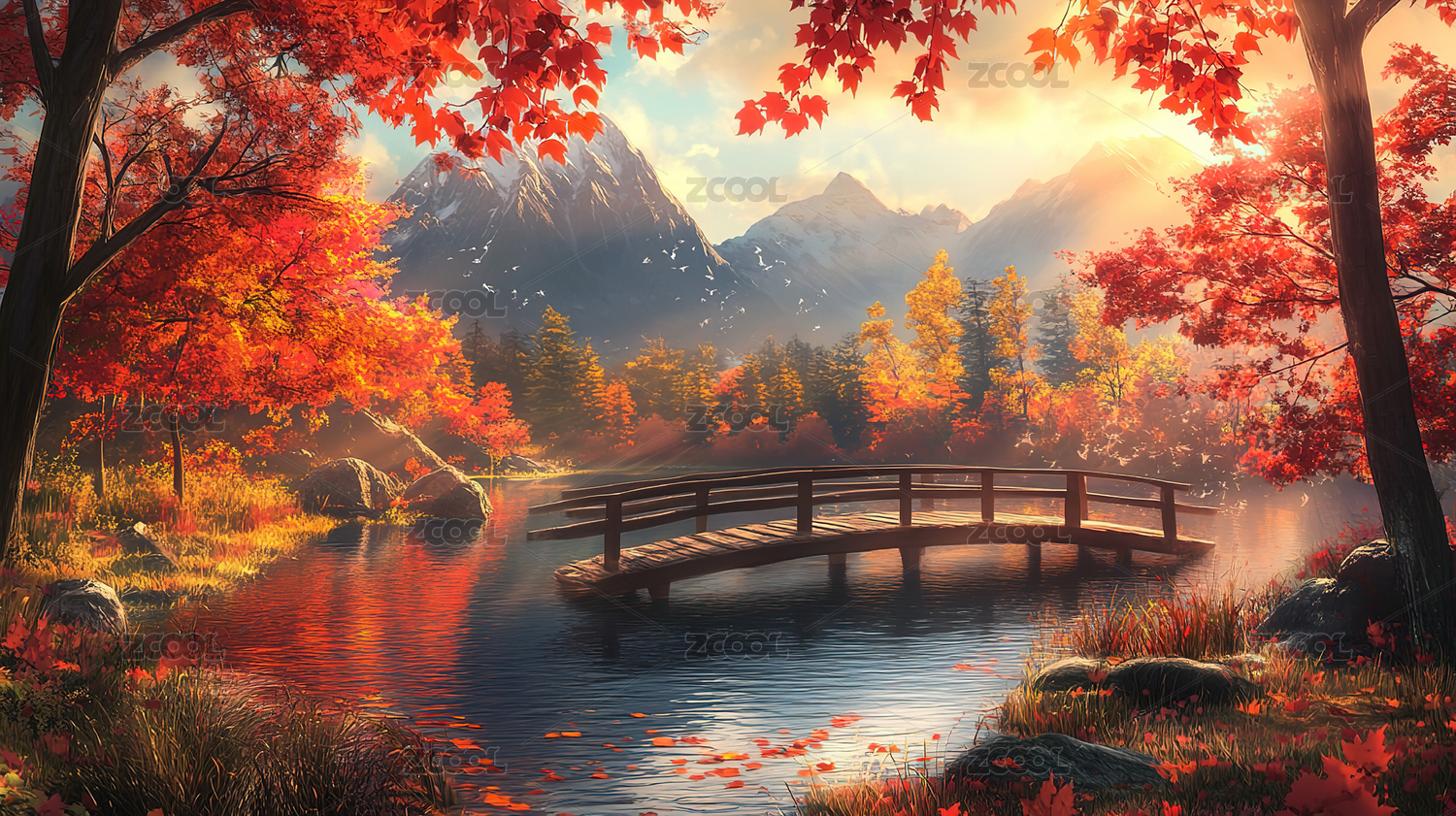 自然,风景,宁静,美丽,湖泊,旅游,桥梁,摄影,水,红色