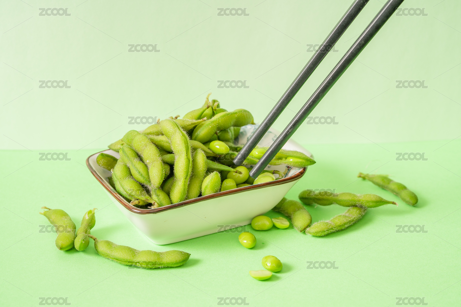 纯色背景下的中国传统特色下酒菜清煮毛豆