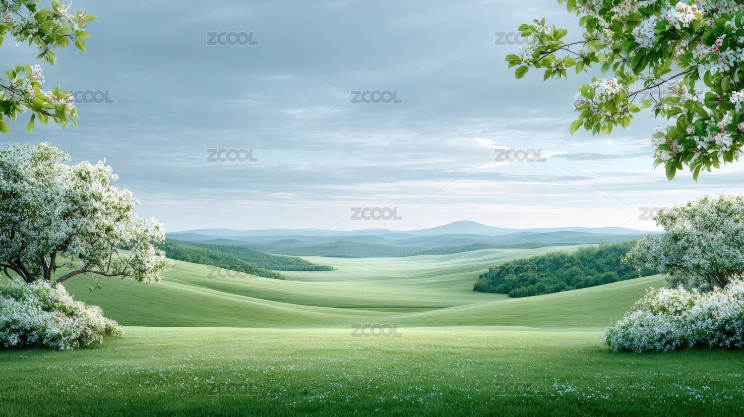 清新绿色山丘草地系列背景