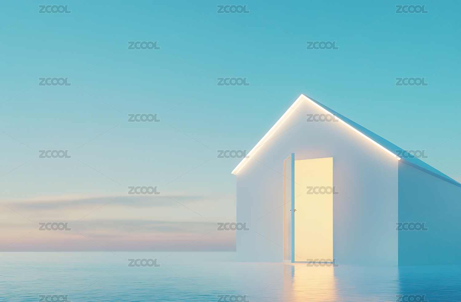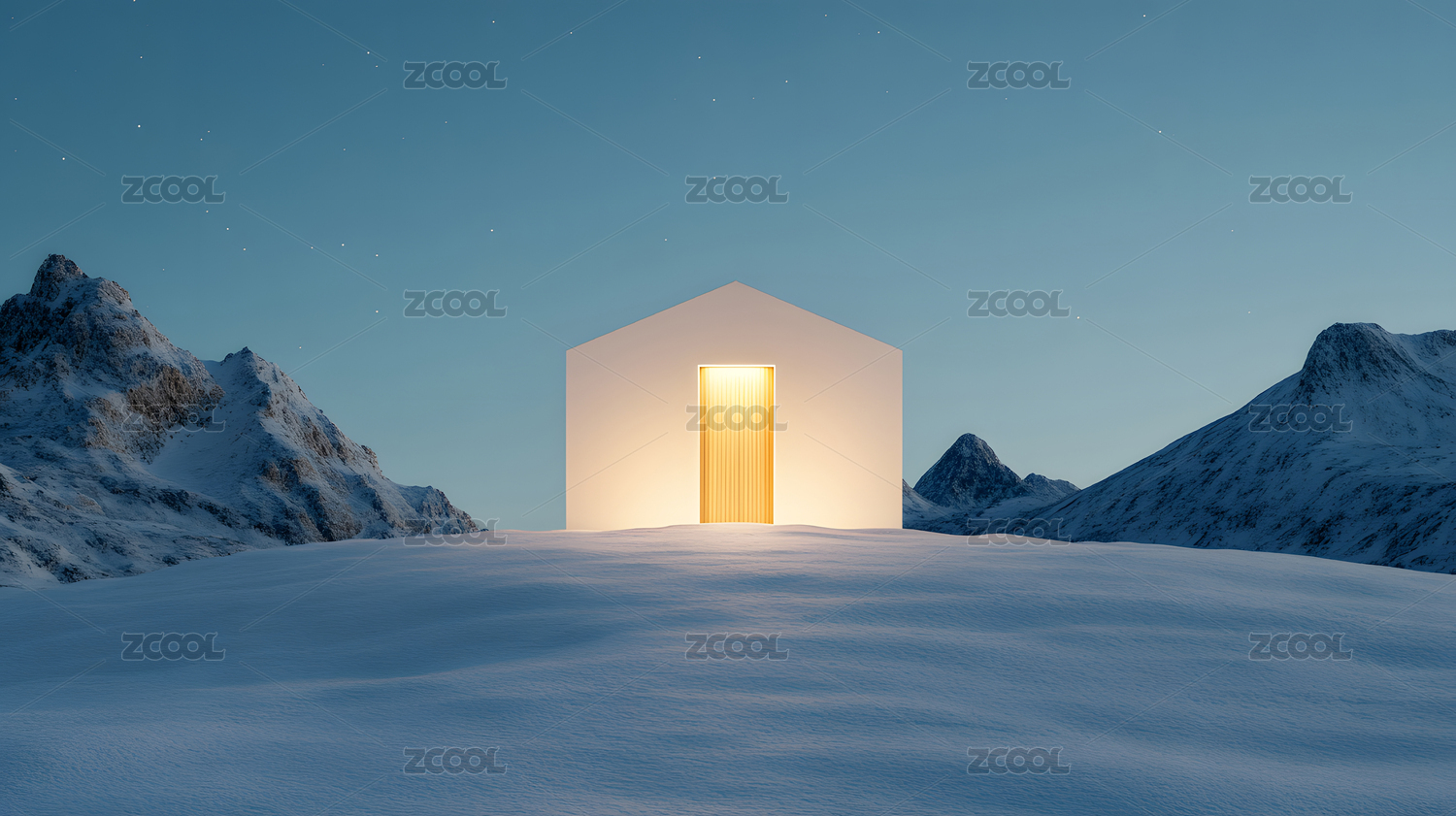 宁静,自然,风景,孤独,简约,白色,建筑,灯光,夜晚,温暖