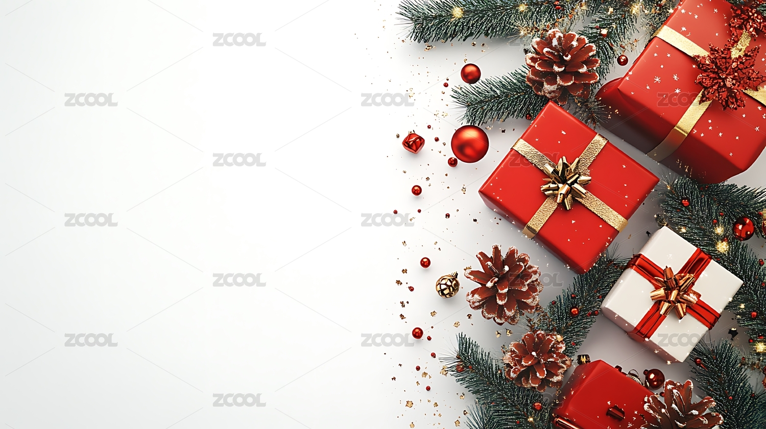 圣诞礼物与松枝主题