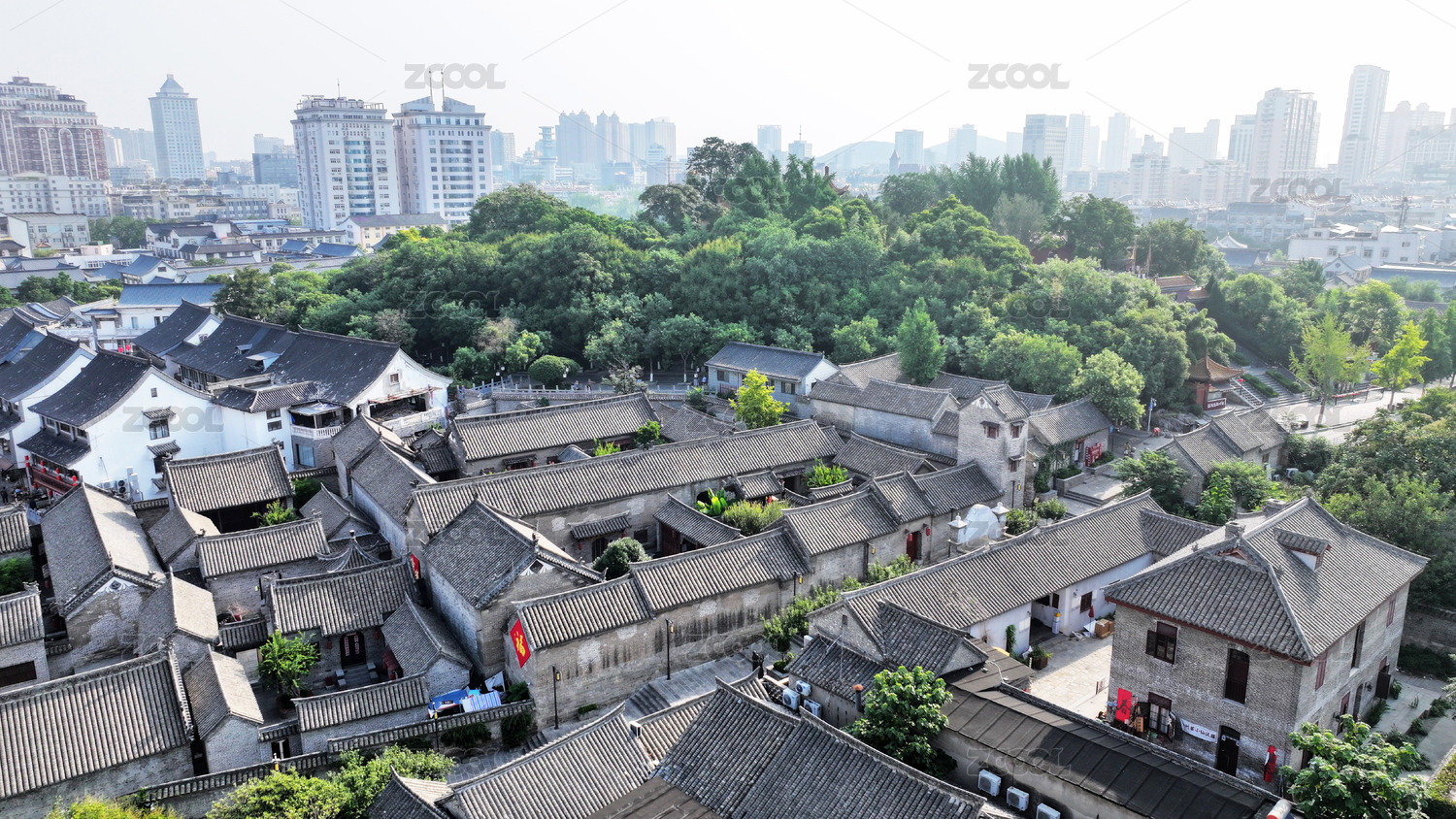 夏季白天航拍江苏徐州文庙建筑风光