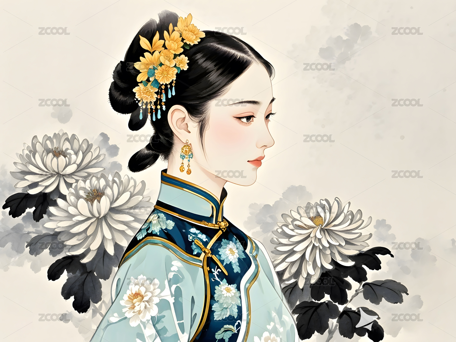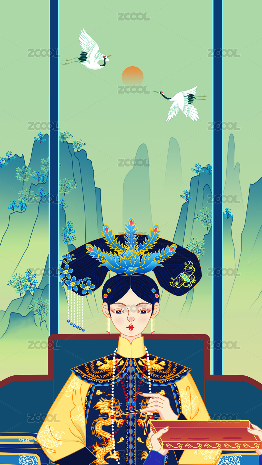 国潮清朝皇后呈贡包包高跟鞋化妆品插画