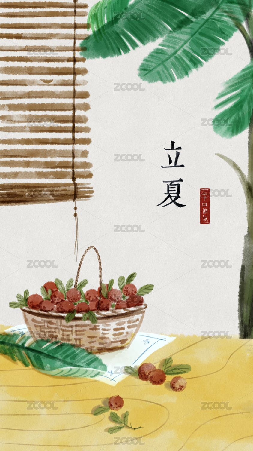 绿色系简约卡通风格立夏二十四节气立夏海报