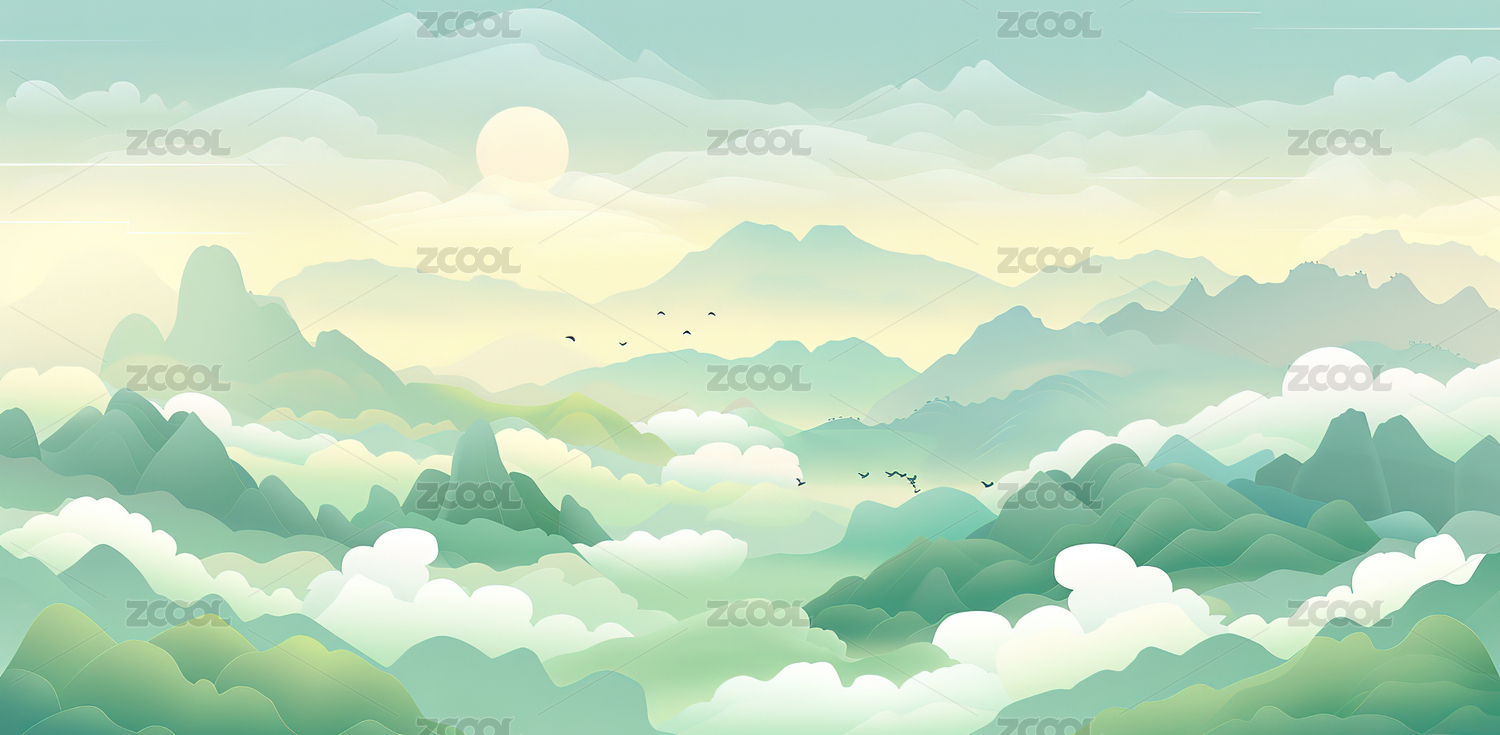中国风古楼建筑传统国风古建筑国潮插画背景