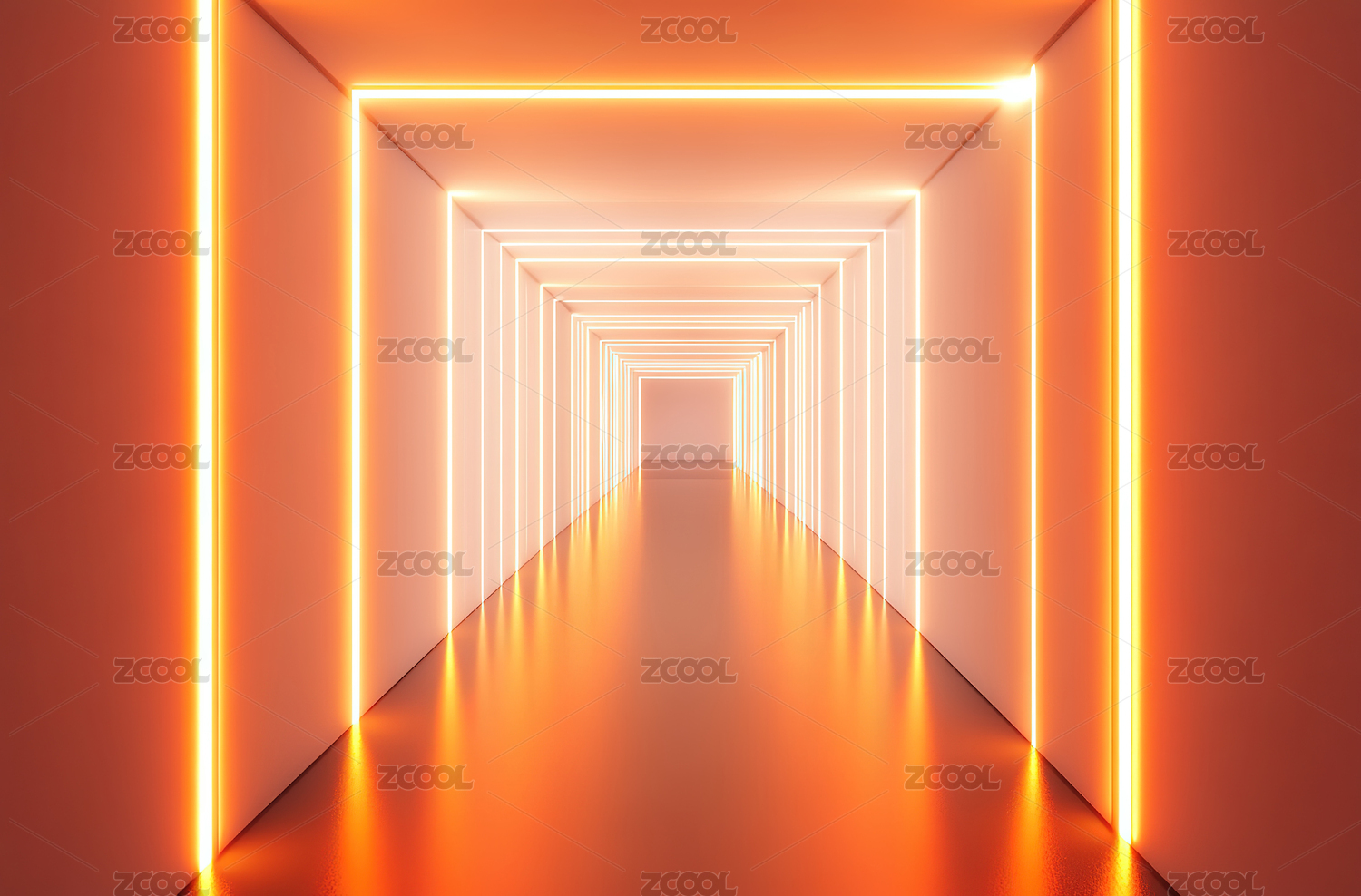 3D渲染科幻几何隧道霓虹灯线概念插图