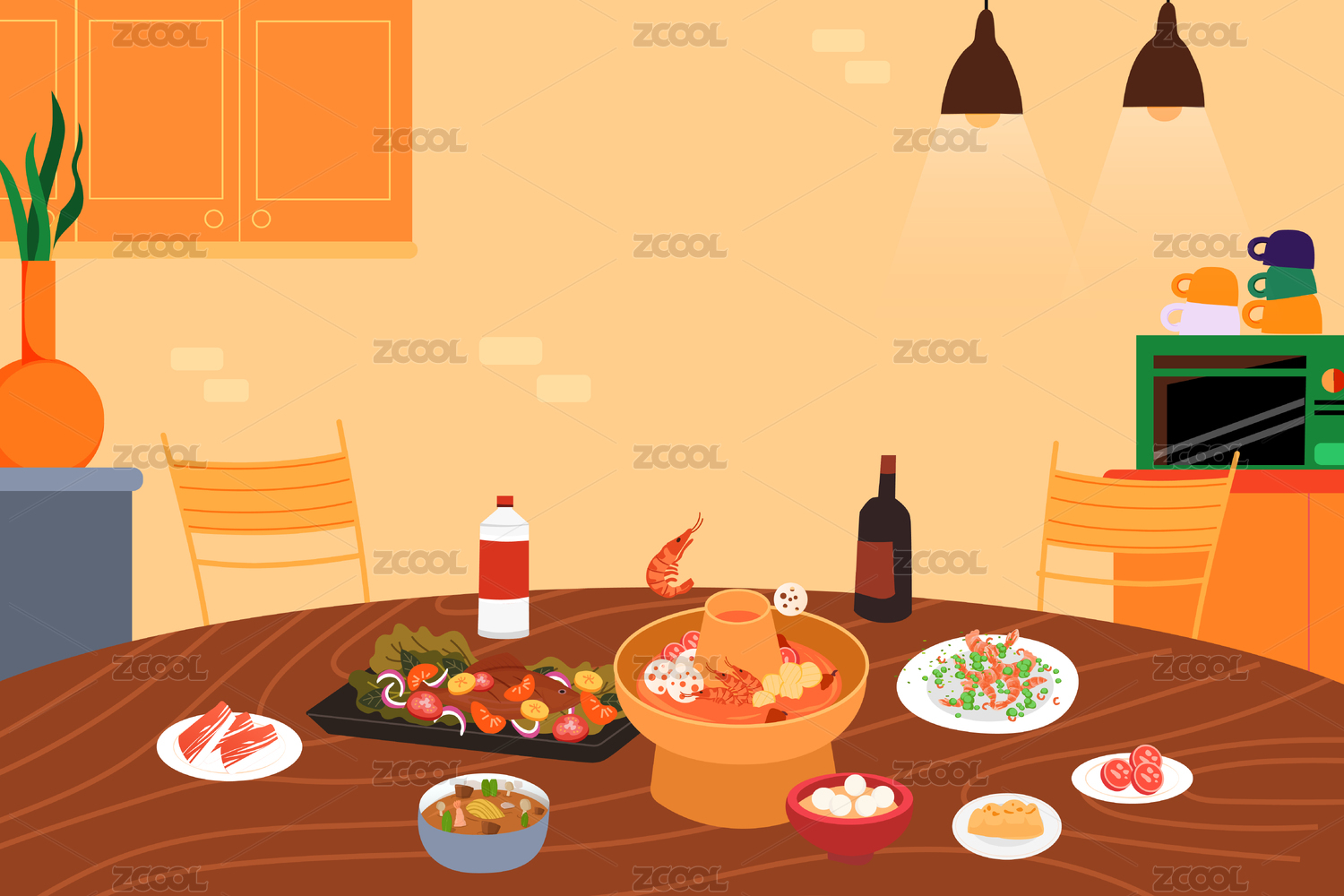 春节年夜饭火锅聚餐传统节日新春团圆饭插画