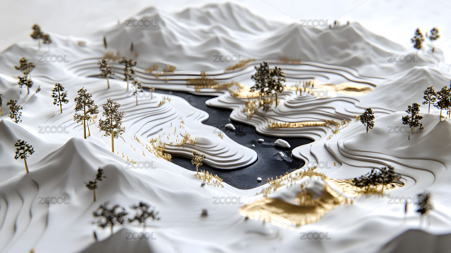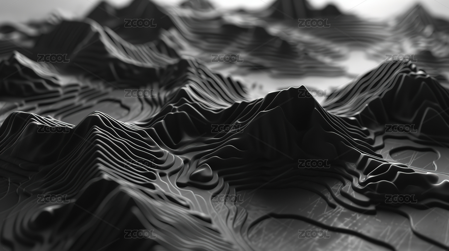 3D渲染山丘山脉高山大山山峰数字艺术插画
