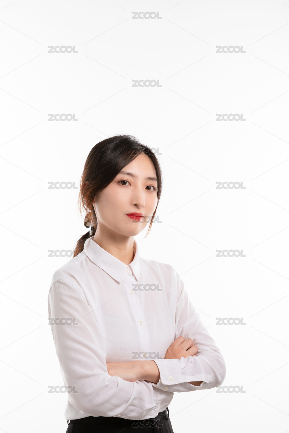 白色背景前充满自信的亚洲美女