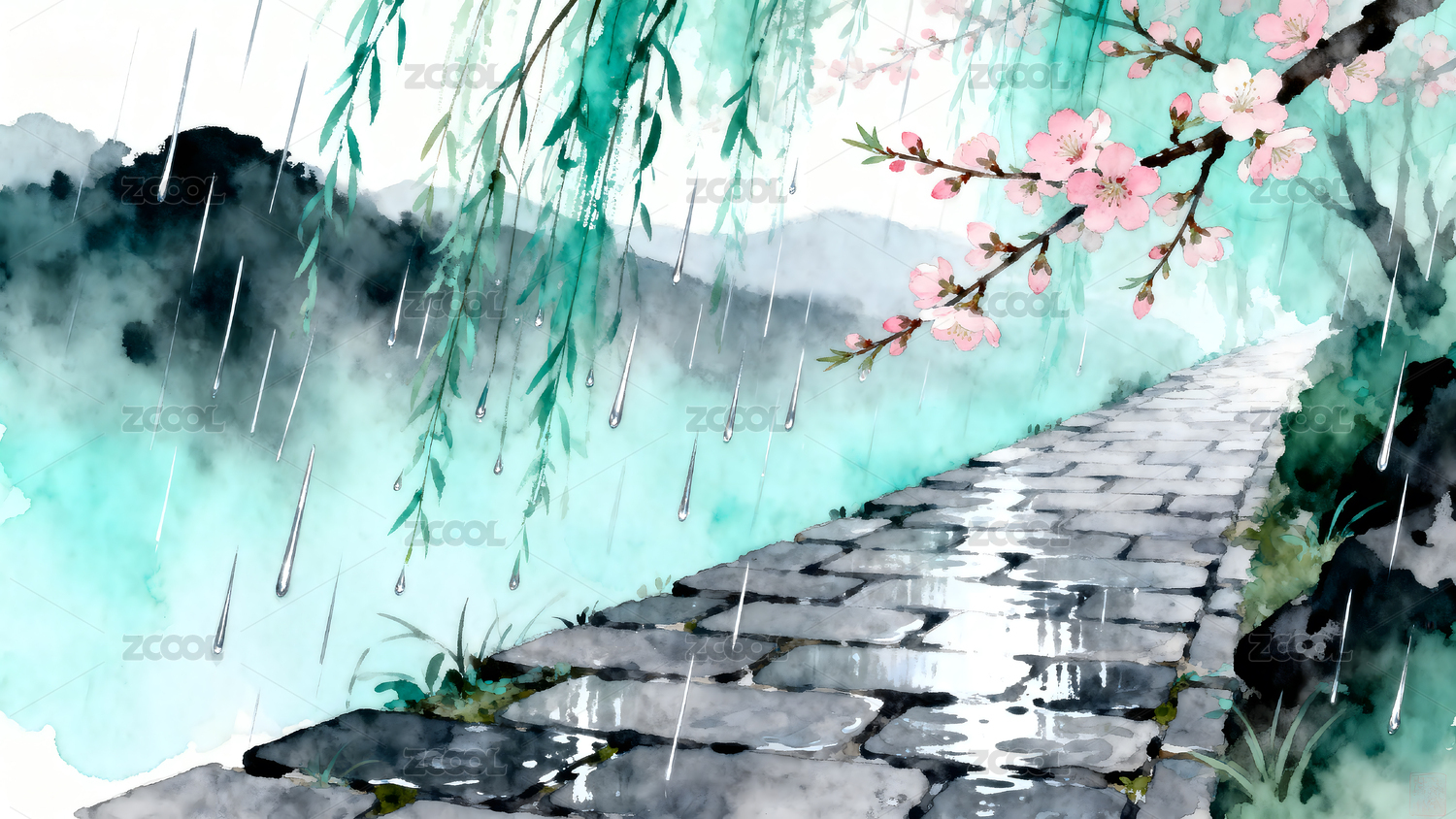 水墨风山水春雨图