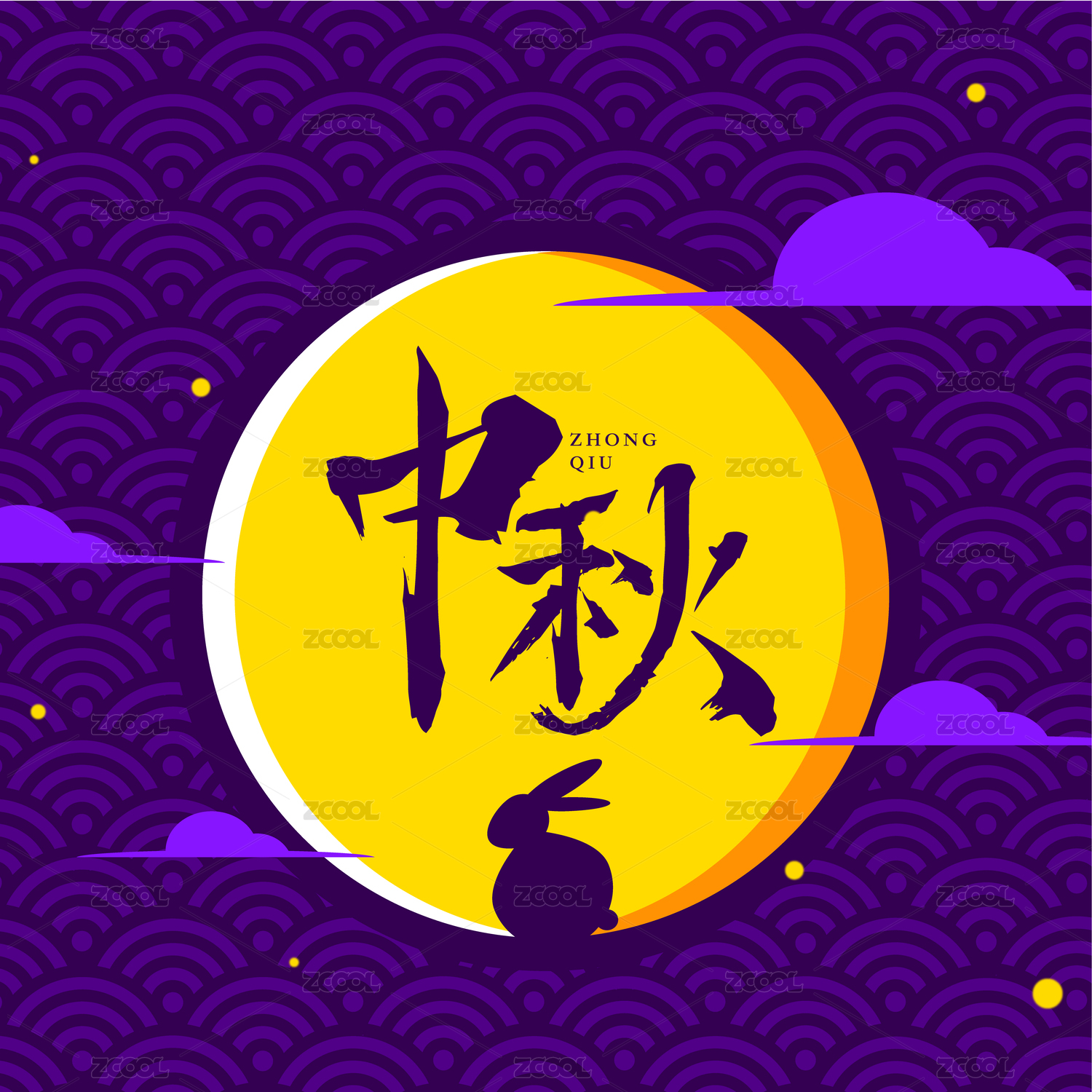 中秋节快乐月亮兔子矢量海报素材中秋手写字体