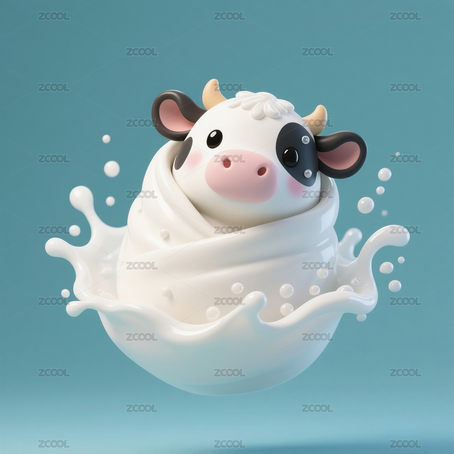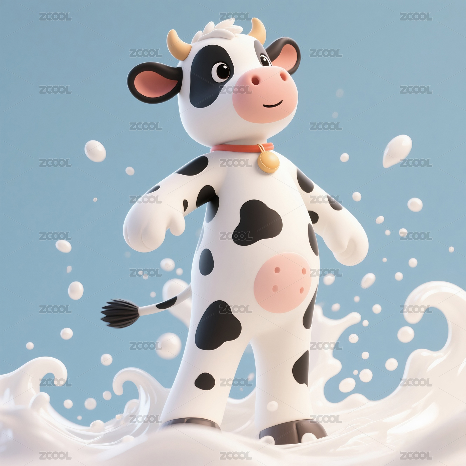 站在牛奶里的奶牛宝宝动漫卡通形象