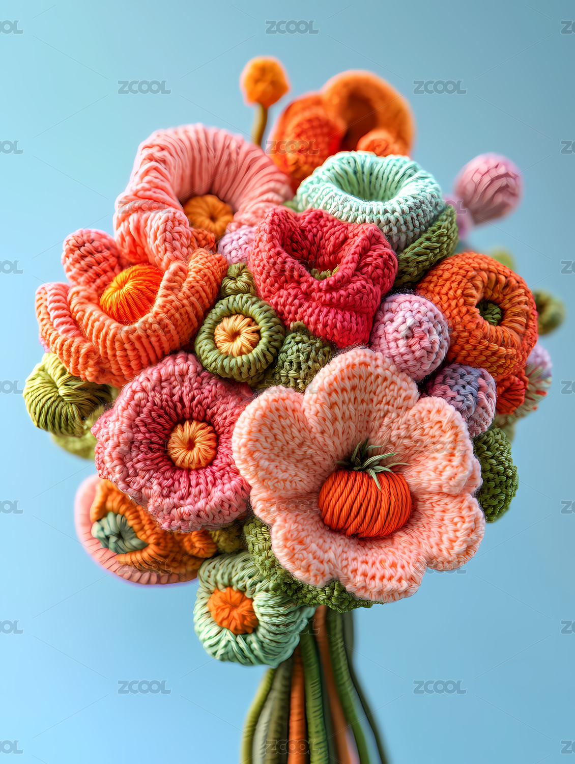 3D羊毛毡毛绒绒质感玫瑰花束模型