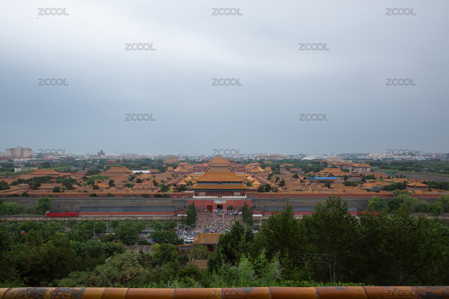 俯瞰北京景山公园寿皇殿中轴线钟楼鼓楼