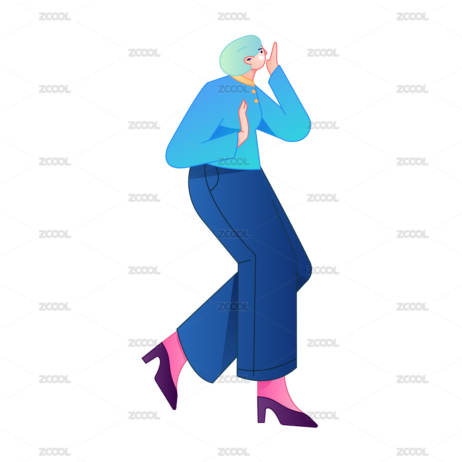 外套,黄色,电蓝色,服装,美女,扁平,插画,潮流,撞色,酷