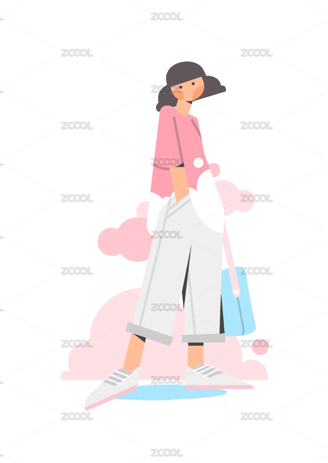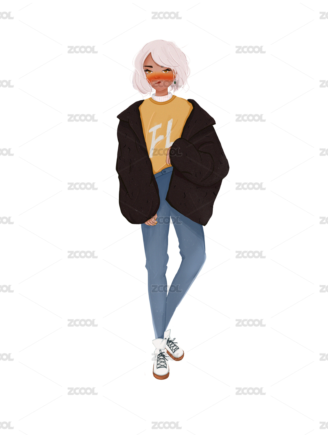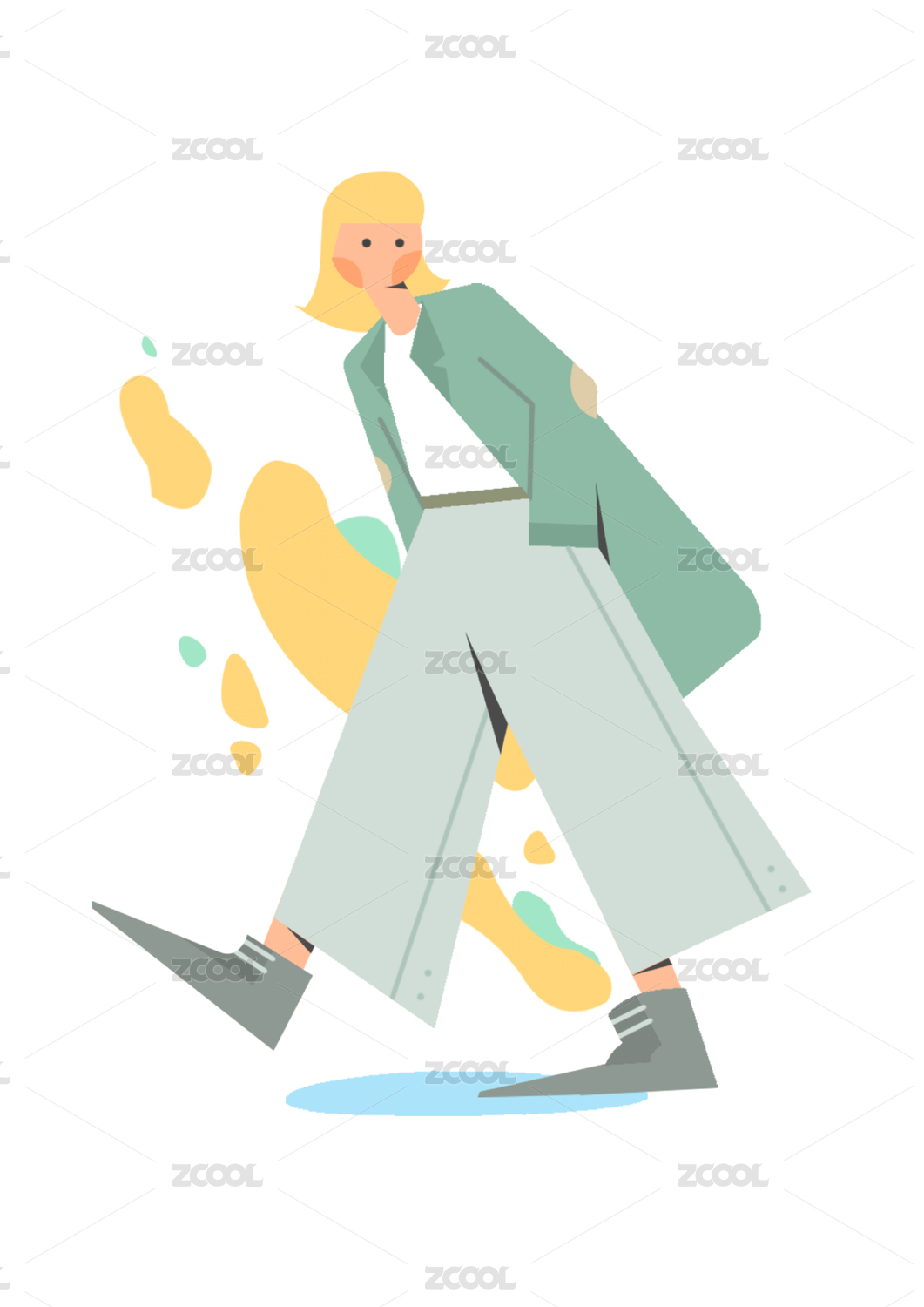 外套,黄色,电蓝色,服装,美女,扁平,插画,潮流,撞色,酷