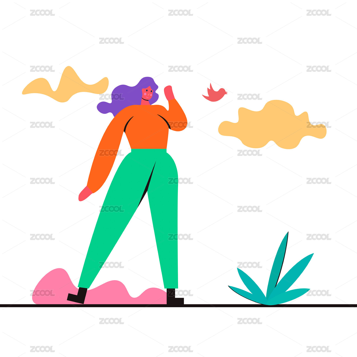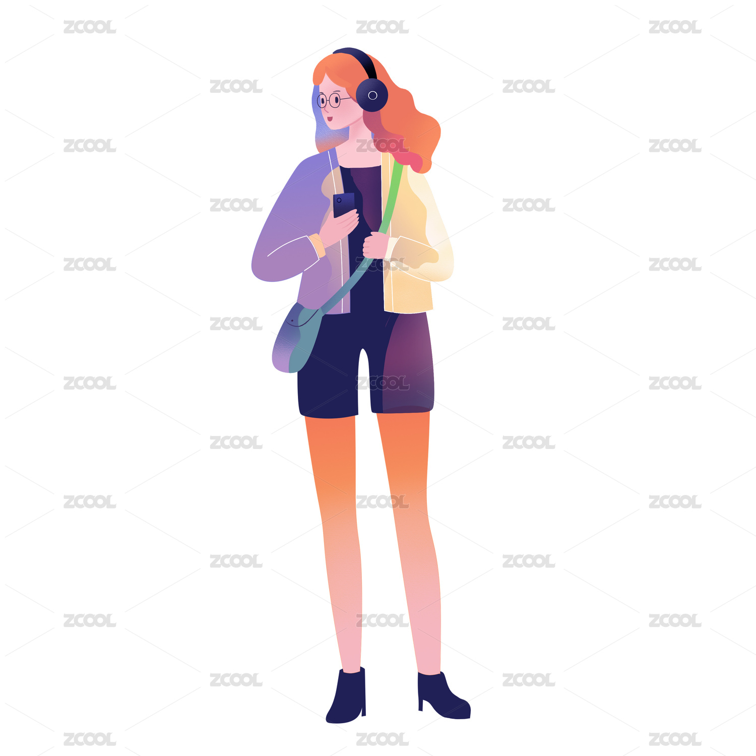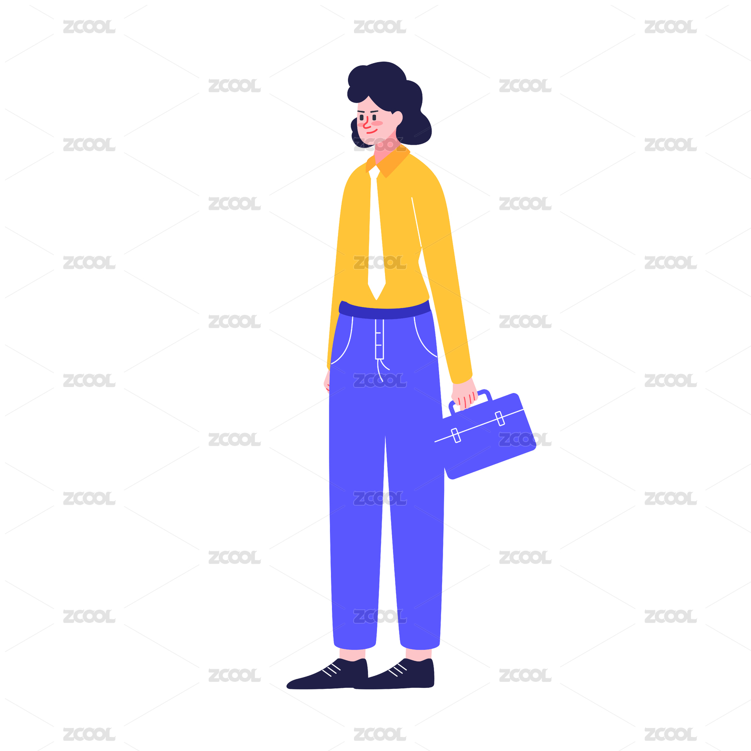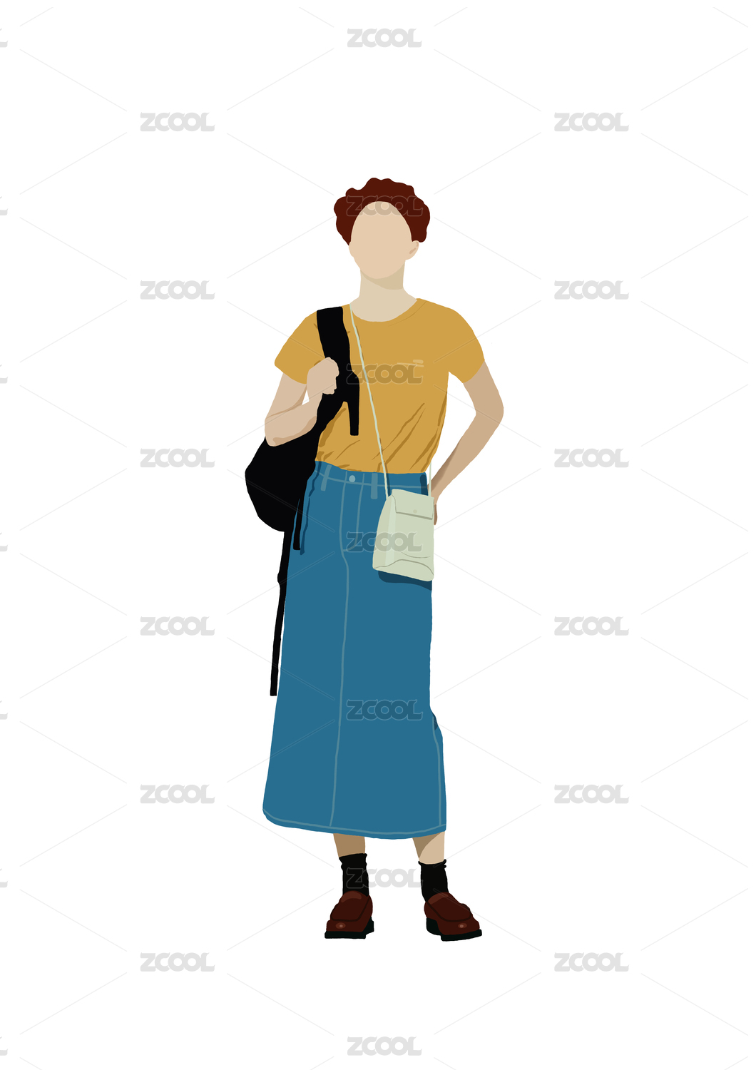 外套,黄色,电蓝色,服装,美女,扁平,插画,潮流,撞色,酷