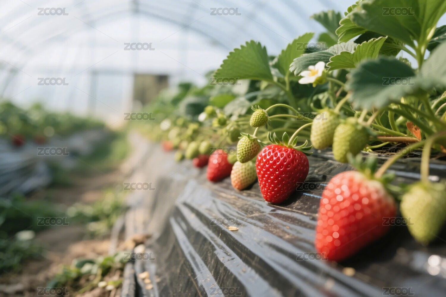 草莓,水果,棚栽,新鲜,采摘,红色,成熟,绿色,绿叶,平架式栽培