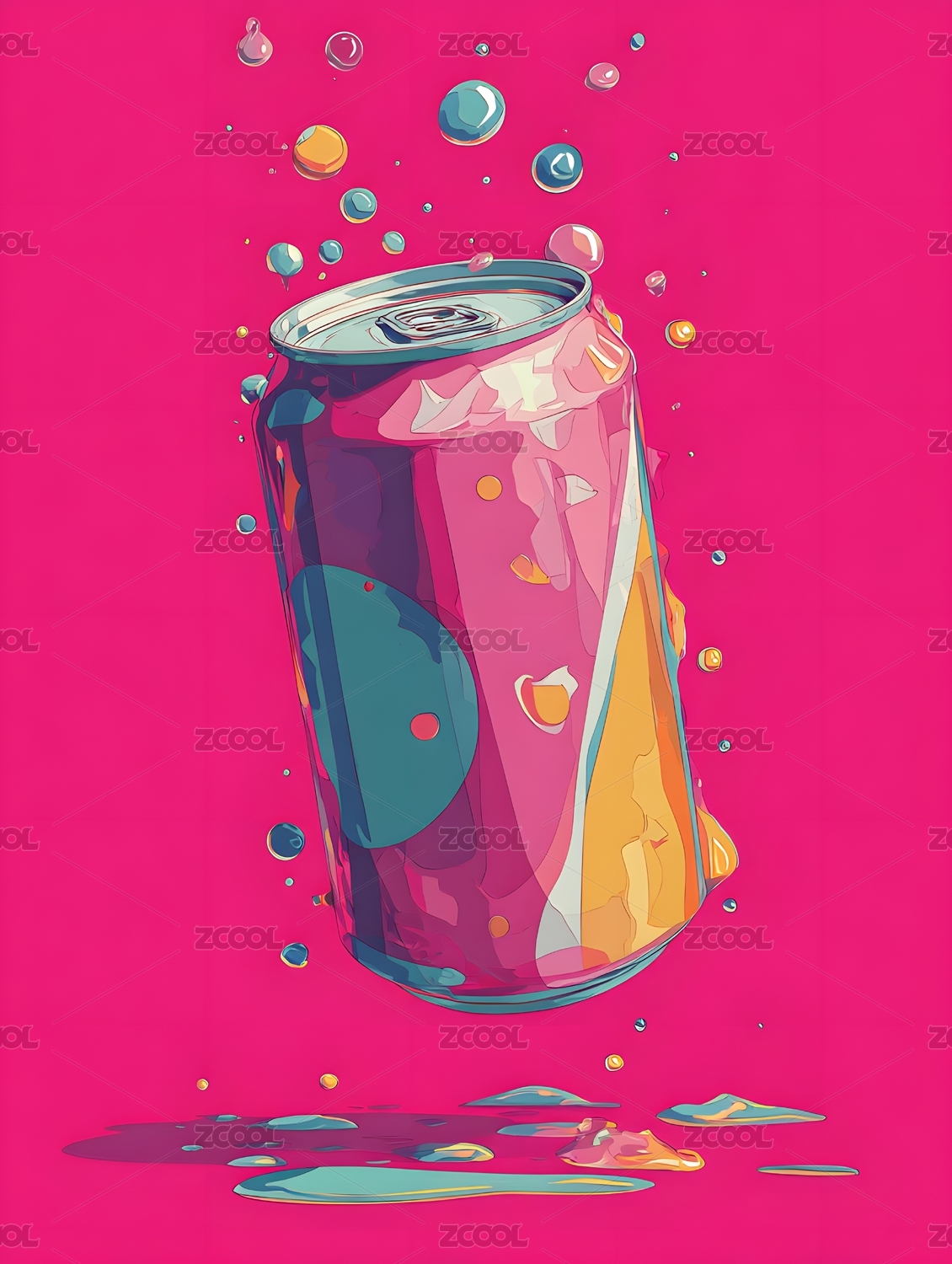 饮料罐倾倒伴随气泡与液体飞溅