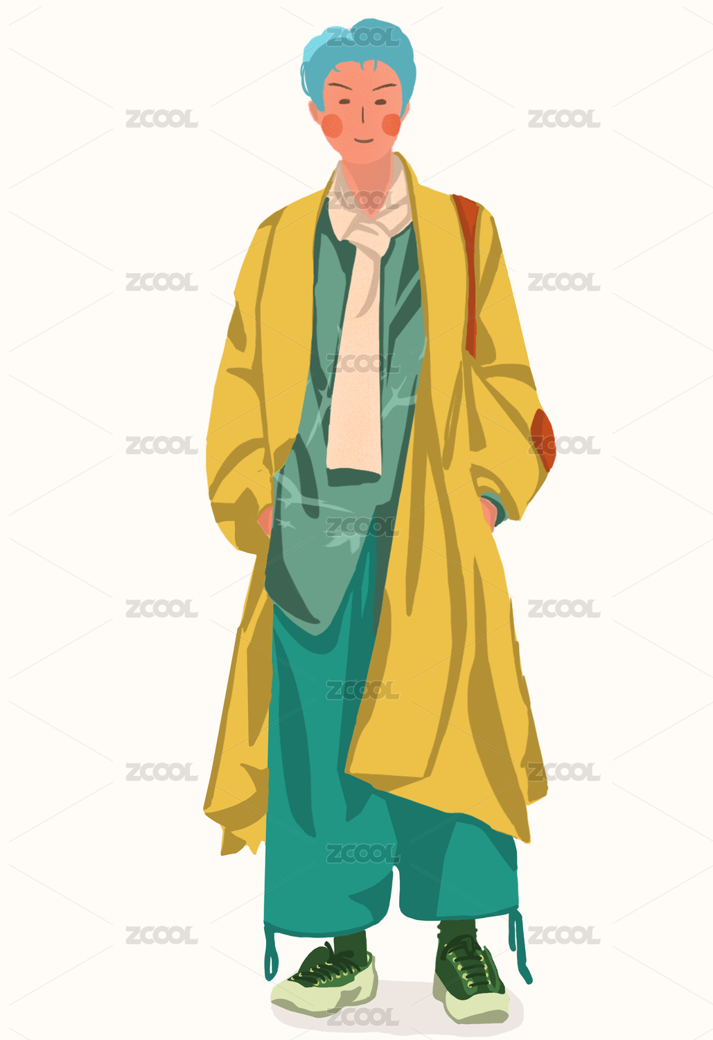 穿大衣的正面扁平人物