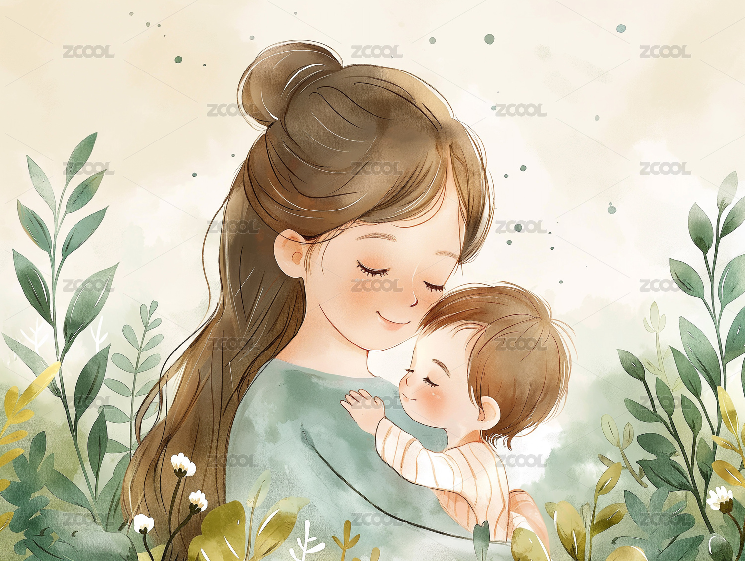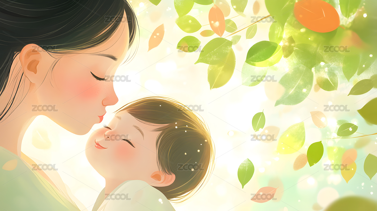 可爱风母亲拥抱孩子温馨场景,母亲节感恩节