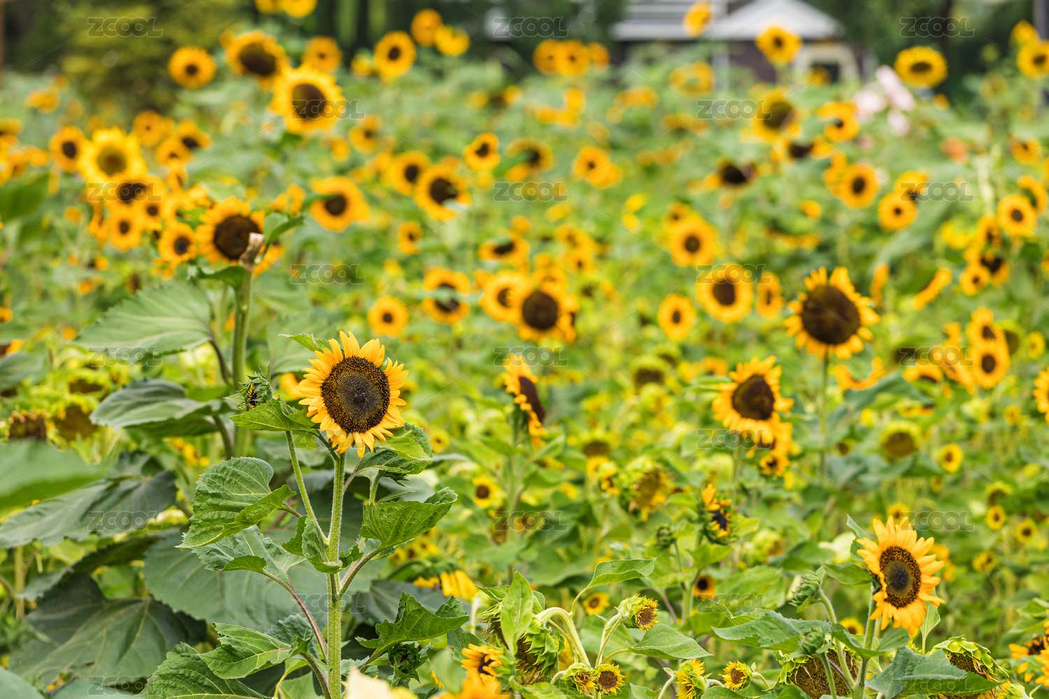 一大片盛开的花色向日葵花园