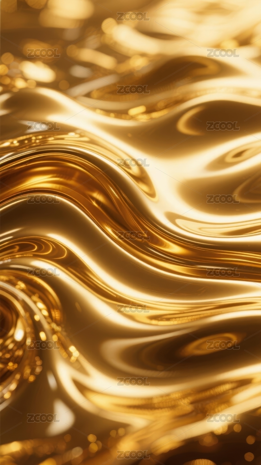 金色水滴飞溅特写在水面3d插图,精华油滴