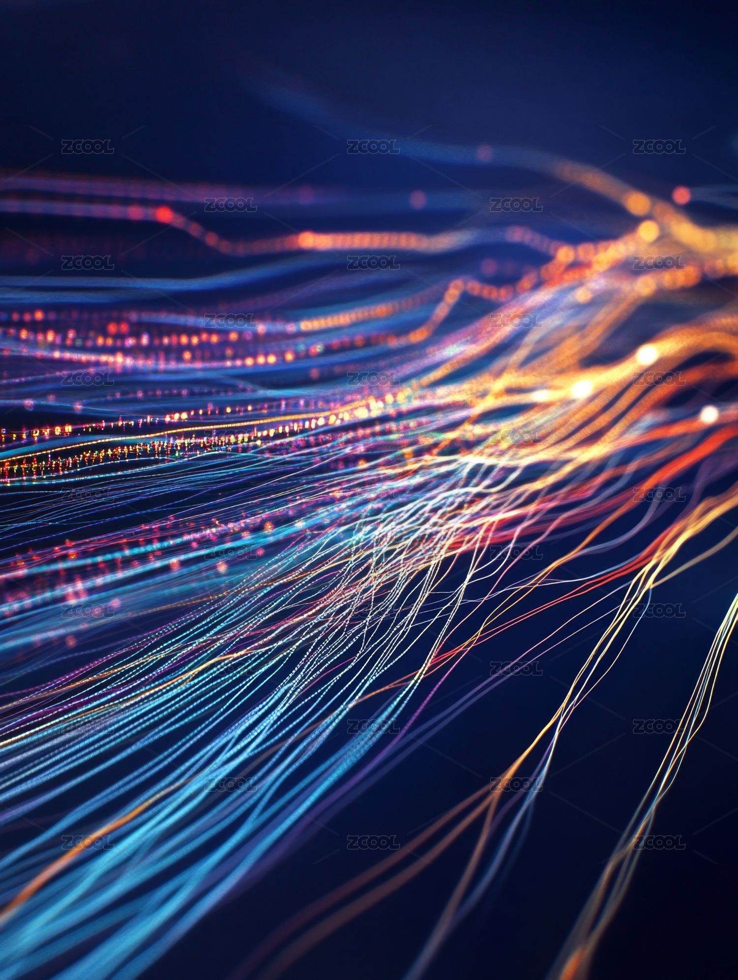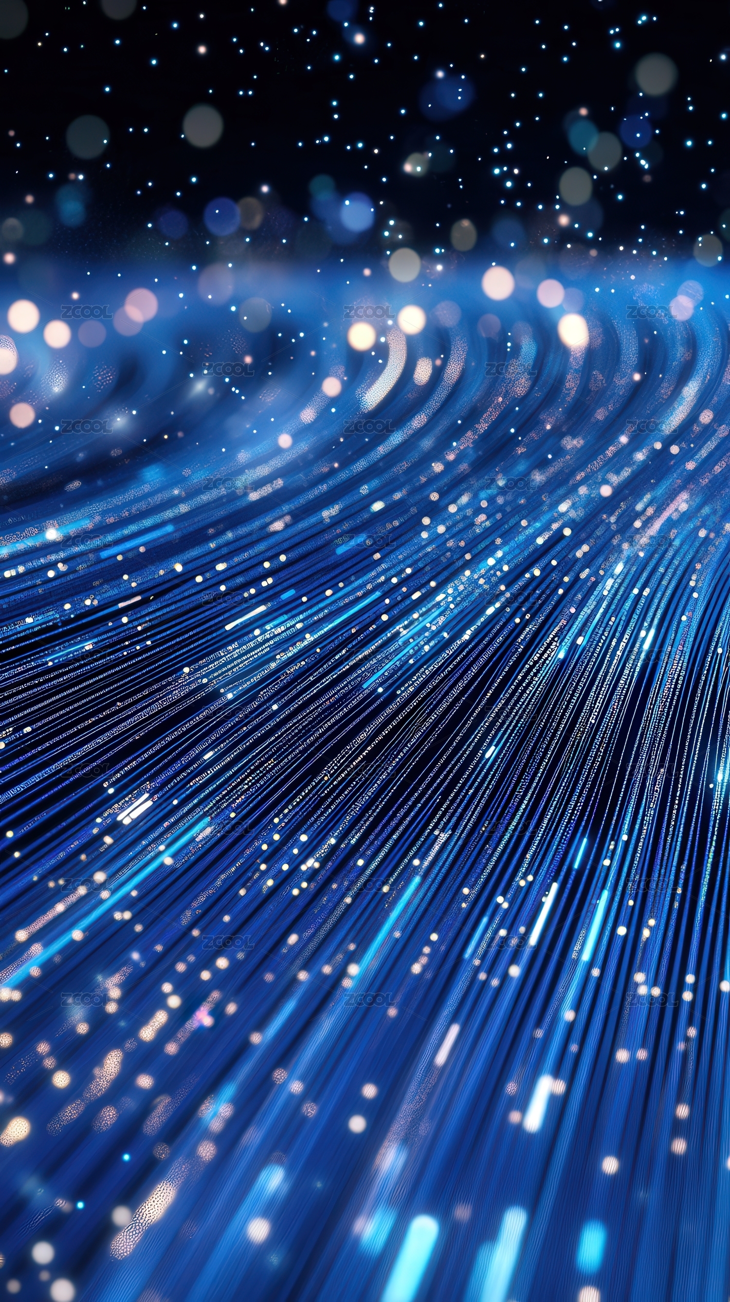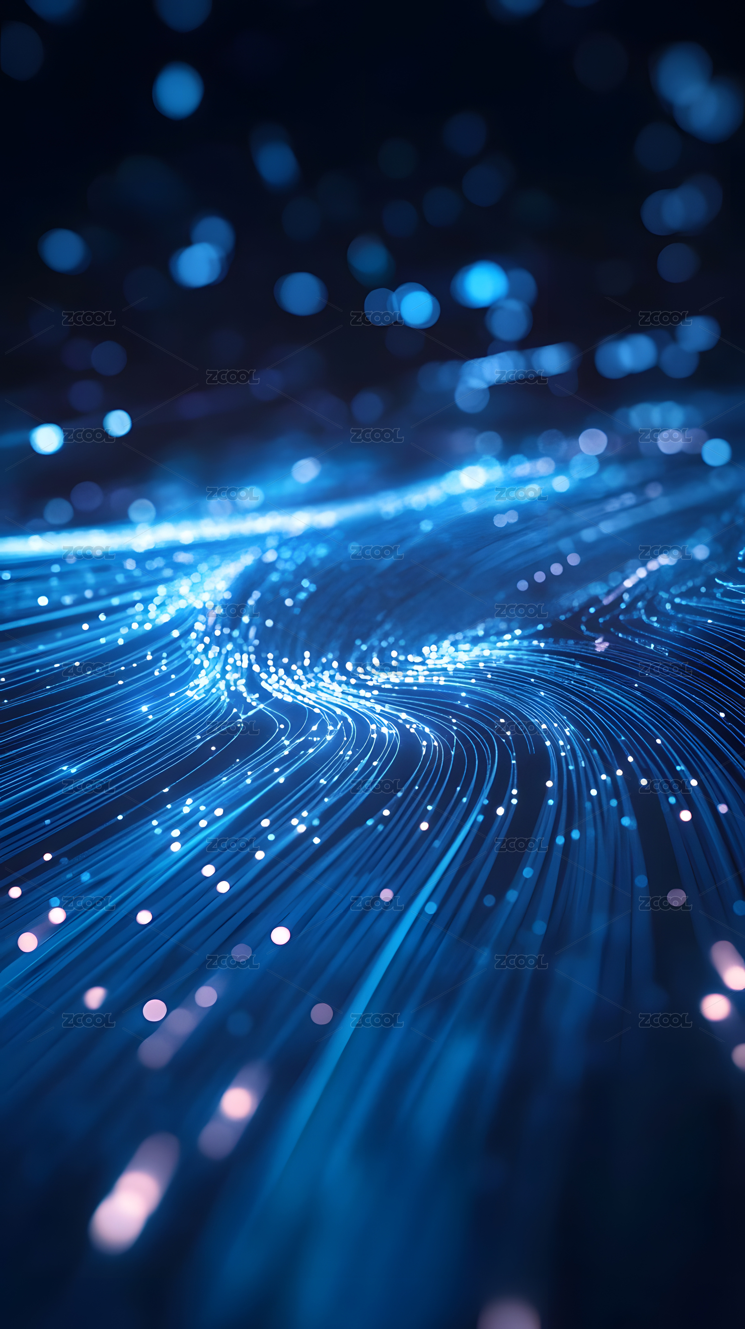 黑色背景下被照亮的蓝色光纤的特写镜头