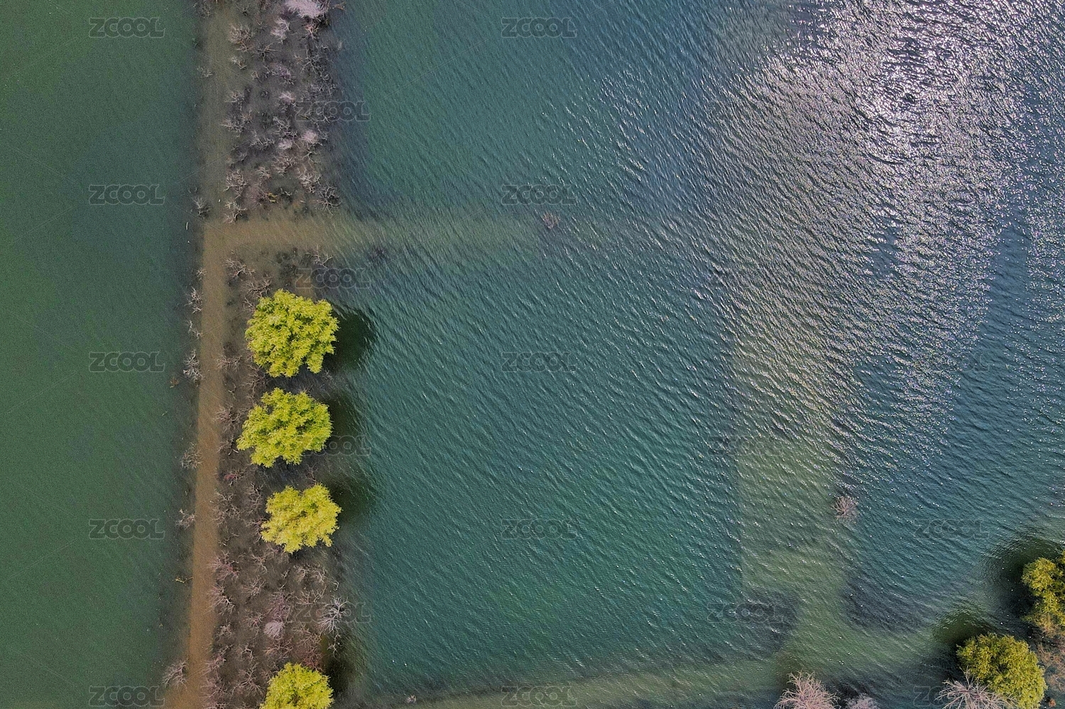 俯视上海青浦青西郊野公园水上森林