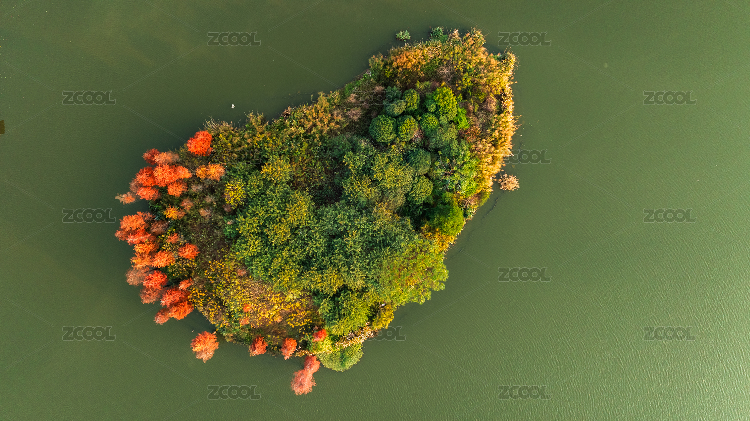 湖泊秋日四明湖水杉林