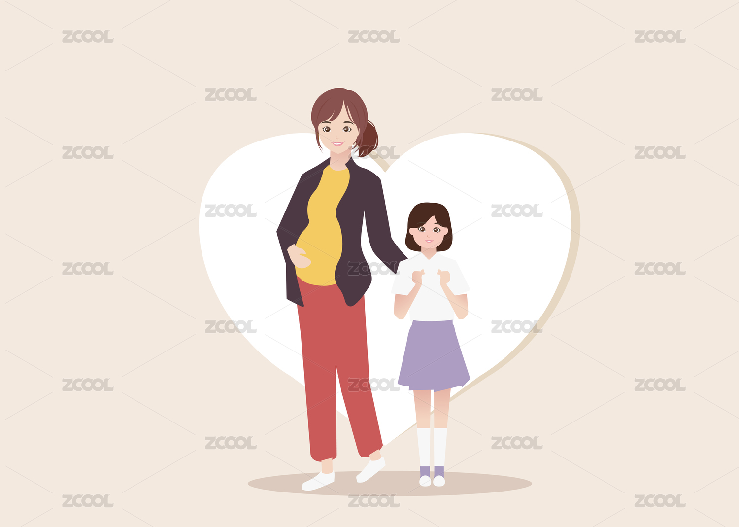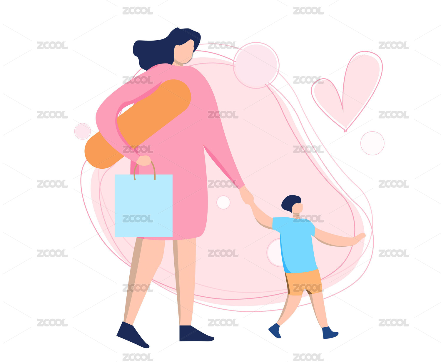 卡通手绘母婴产品妈妈抱着婴儿小孩素材插画