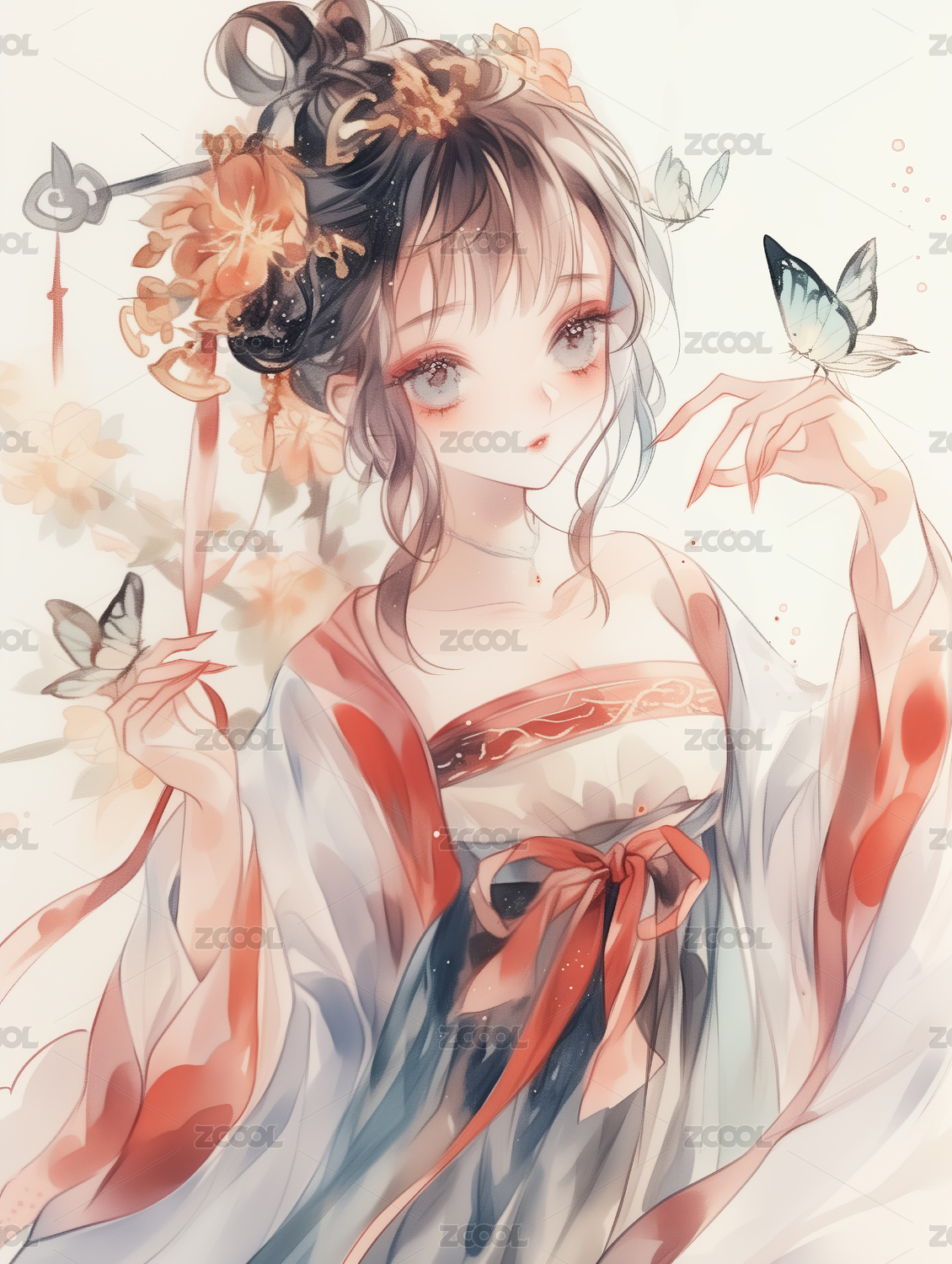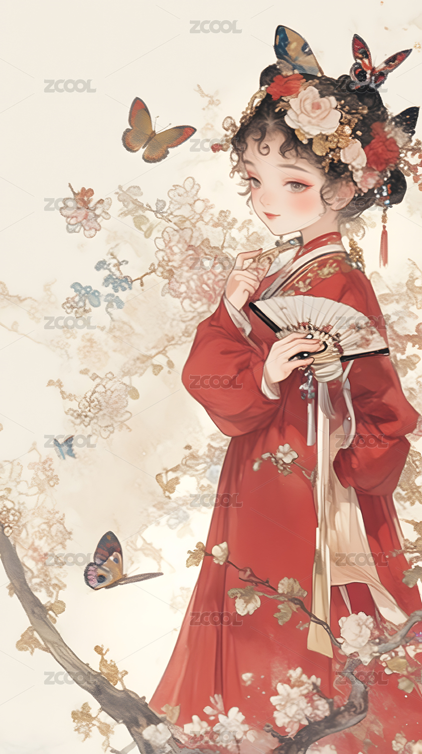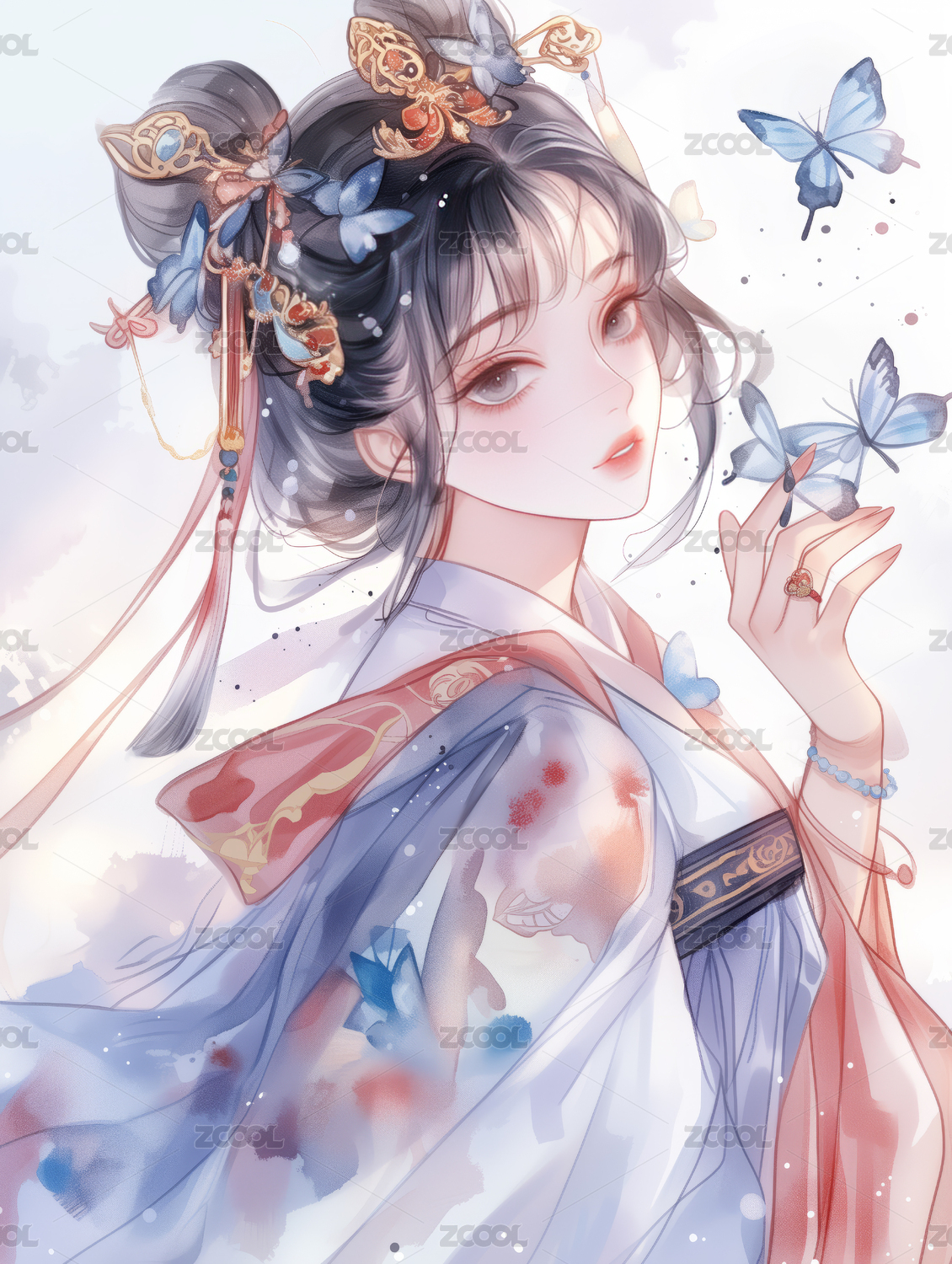 美女,古代,传统,头饰,汉服,少女,美人,女孩,仙女,蝴蝶