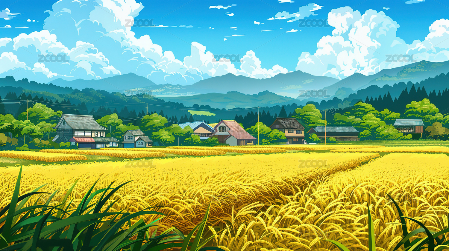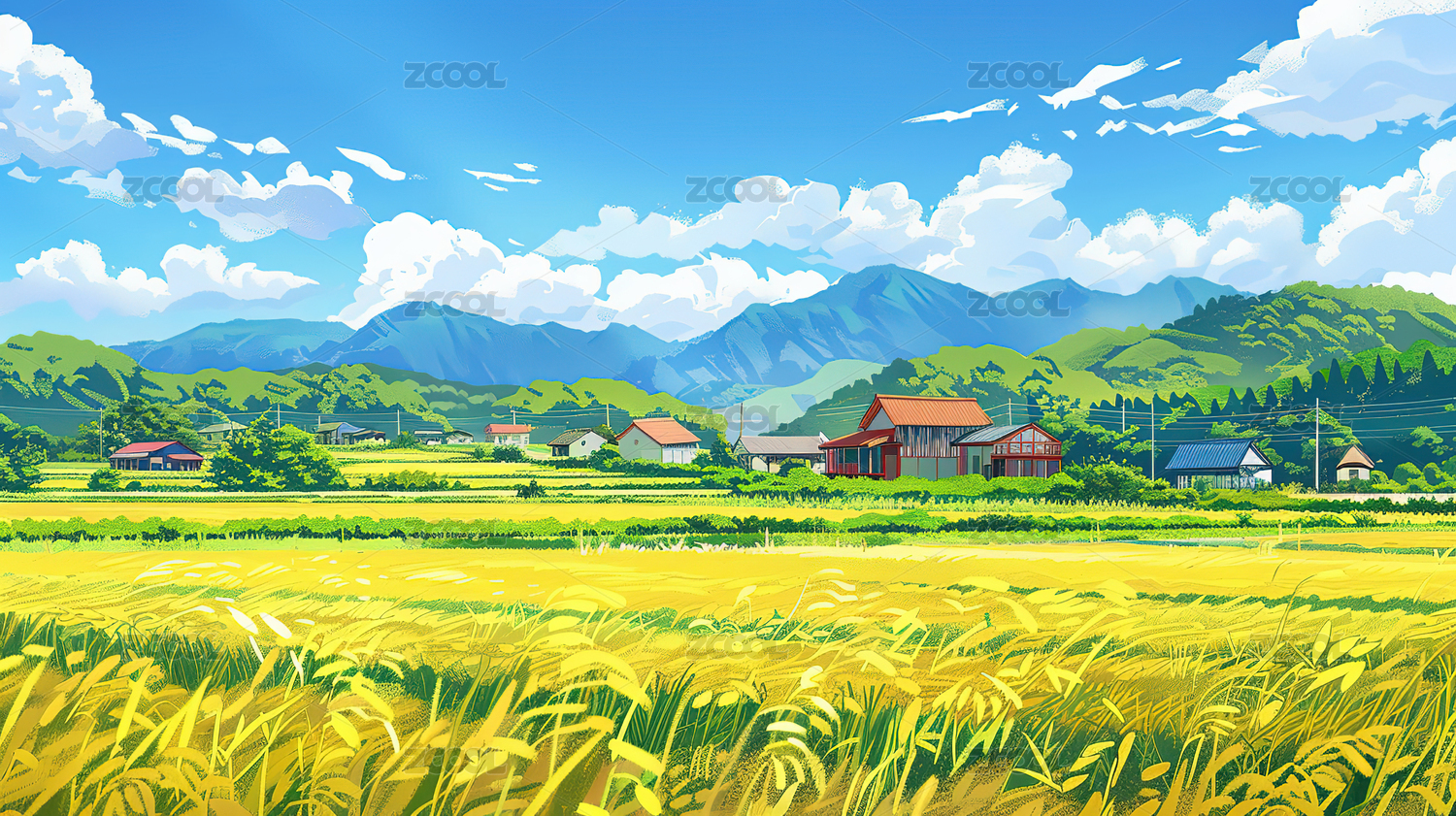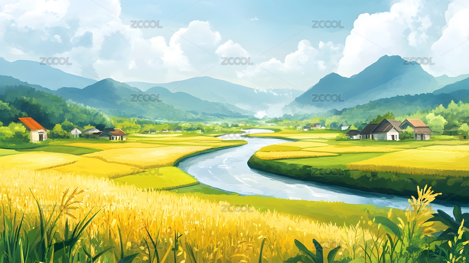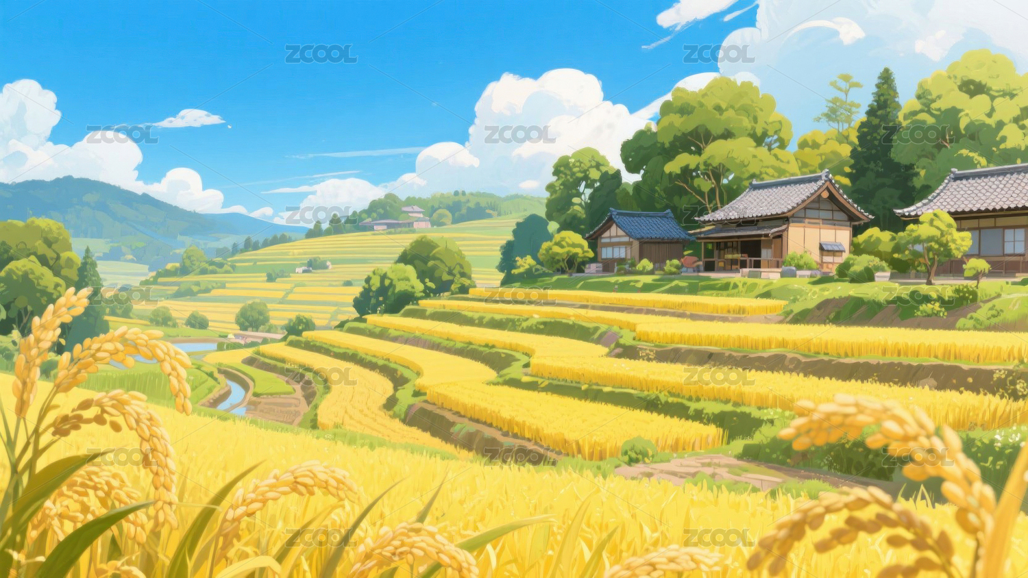 稻田插画