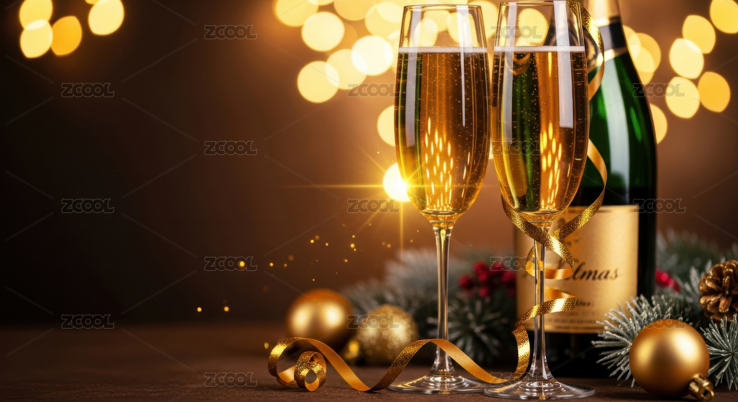 香槟酒杯与节日装饰