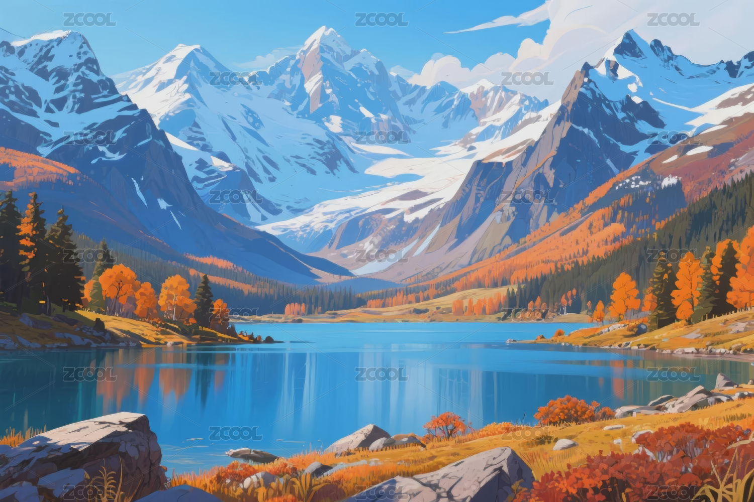 雪山湖畔秋景