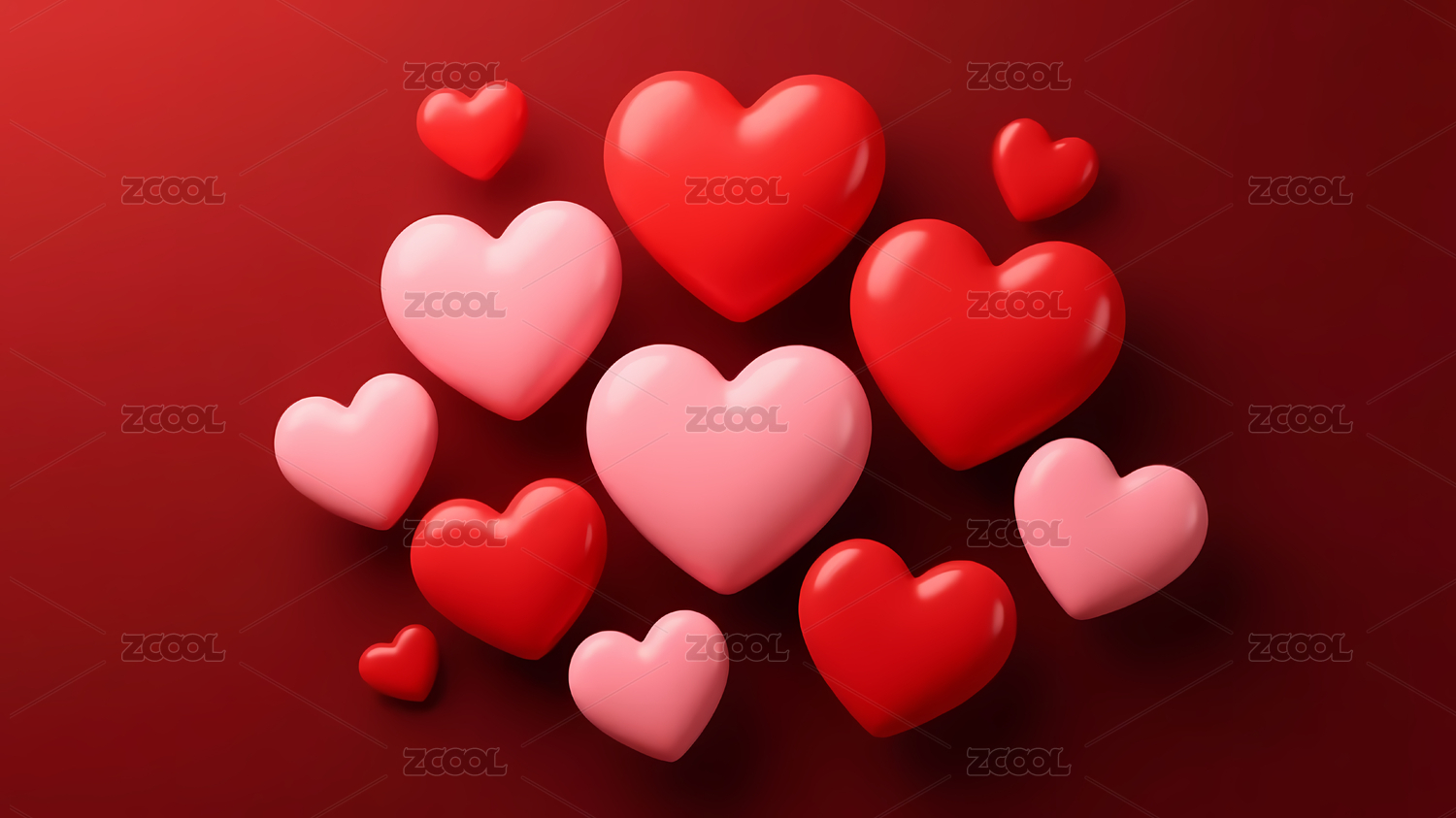 红色,心形,小心形,粉红色,渐变背景,草莓,小颗粒,果冻,花瓣,立体图案