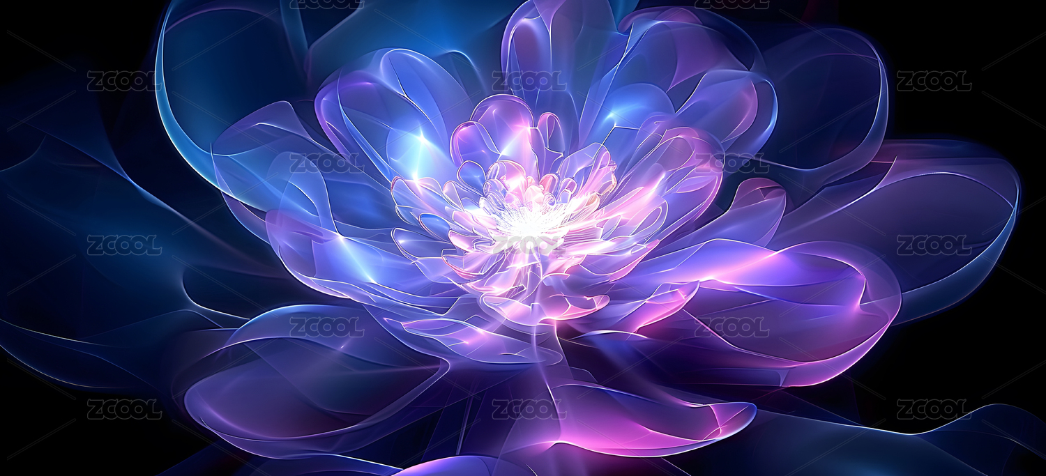 梦幻蓝光莲花绽放奇幻