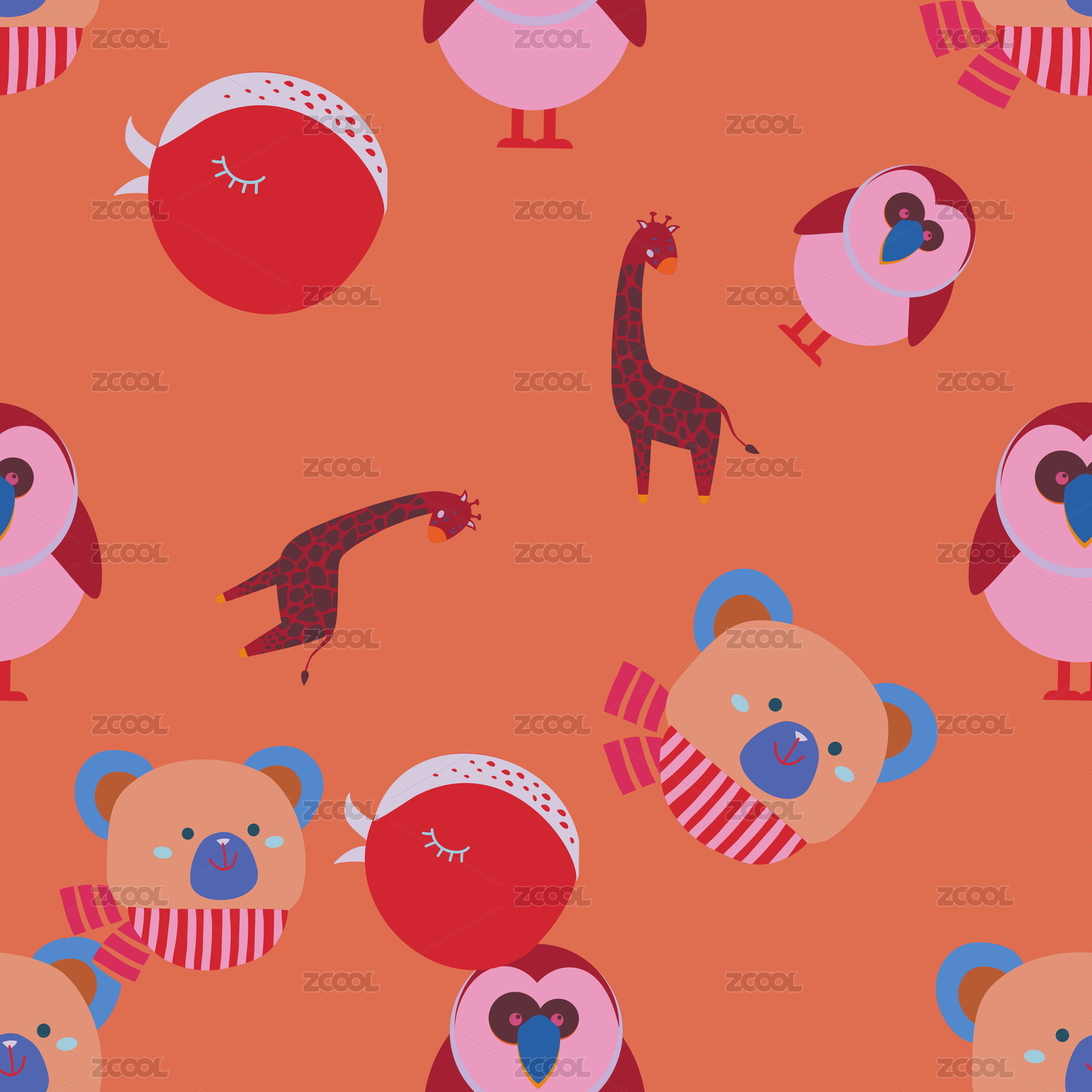 插画,动物,无缝,卡通,可爱,拼接,重复,图形,图案,位图