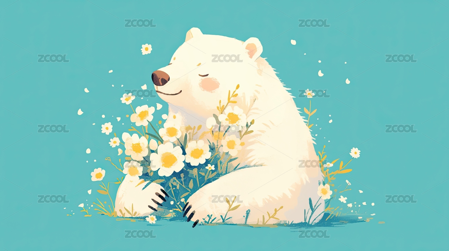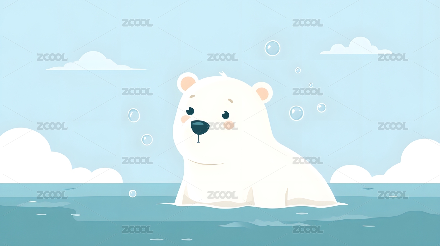 可爱,呆萌,蓝色调,温馨,北极熊,小熊,白熊
