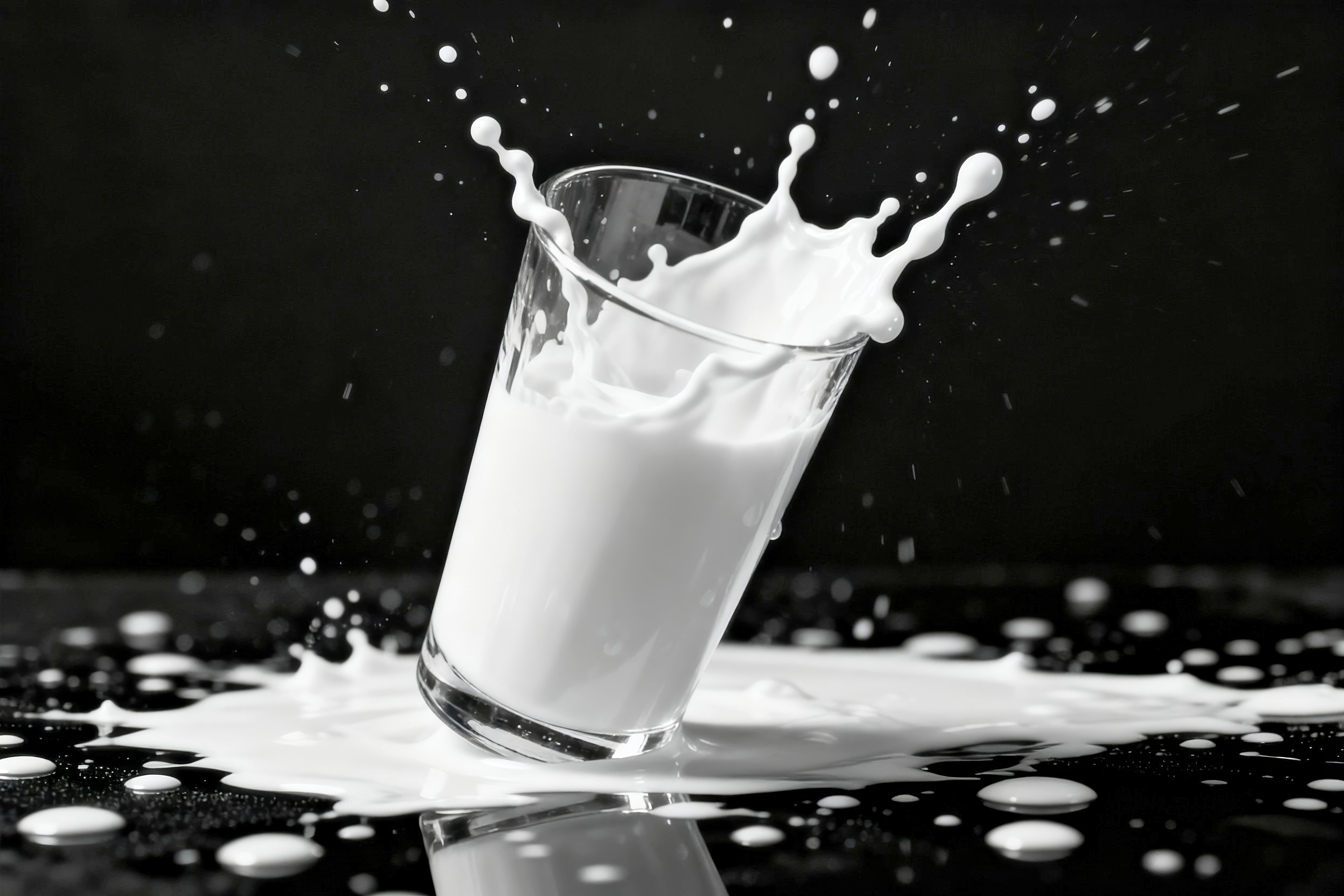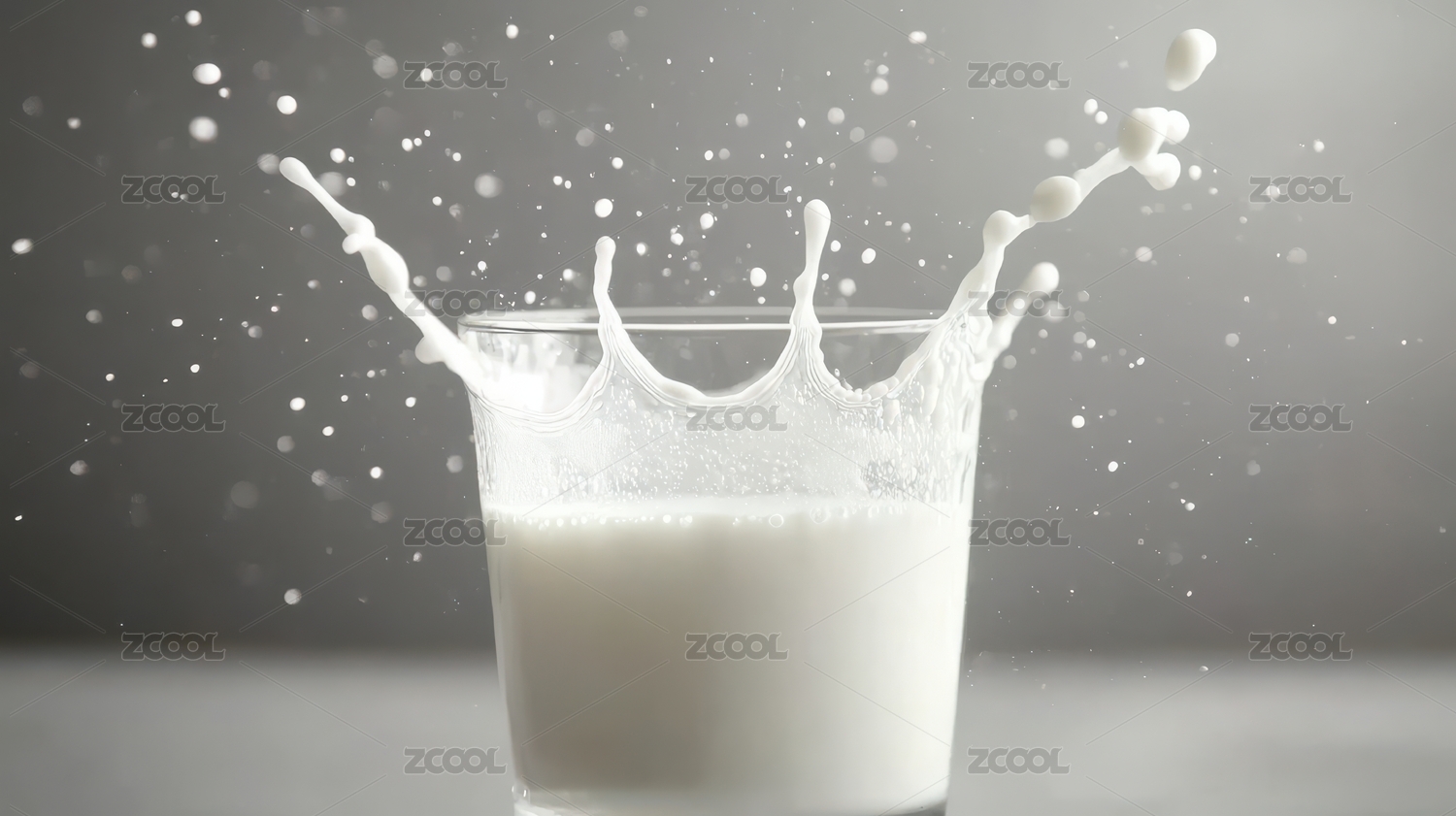 将牛奶倒入玻璃杯中并撒上牛奶图片